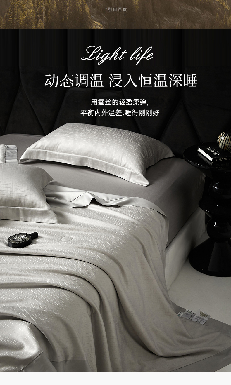 商品名称:纪梵茜 2025新款天丝提花夏被四件套 天丝蚕丝被 蚕丝夏凉被蚕丝空调被 星光灰