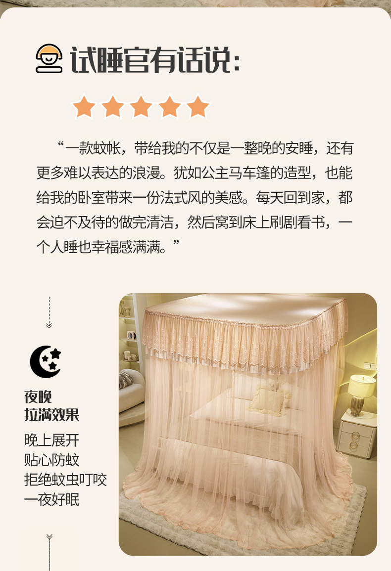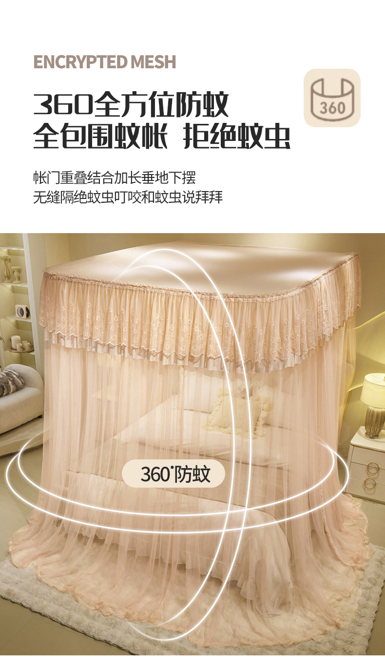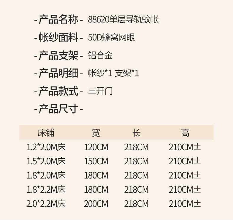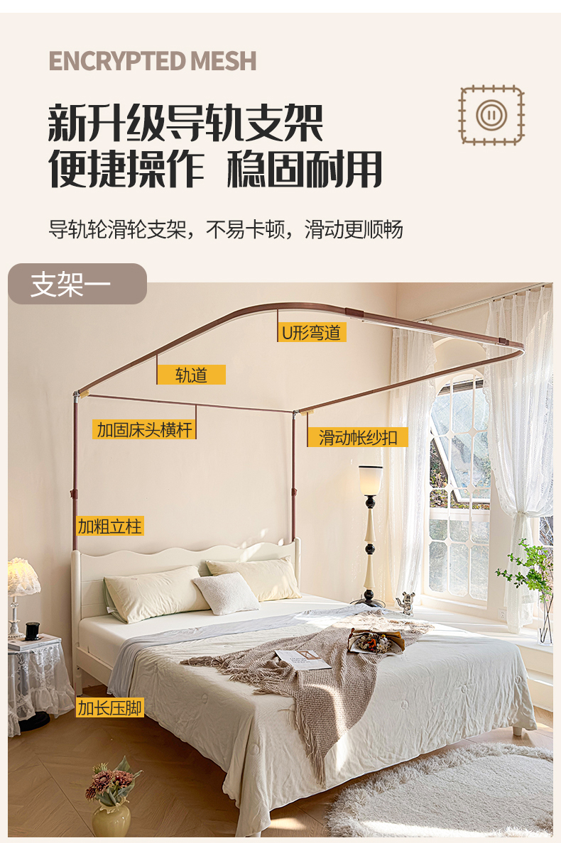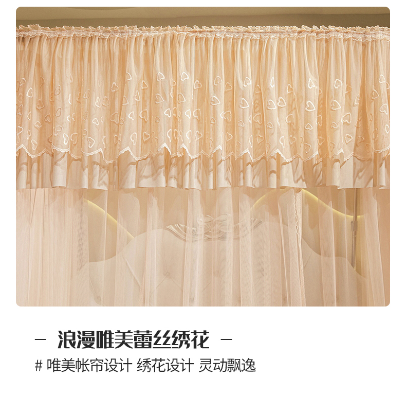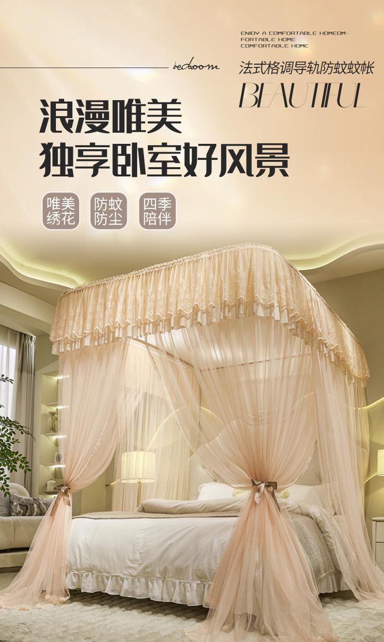 当前位置: 91家纺网 > 商品网购 > 床上用品 > 蚊帐 > 导轨蚊帐 > 夏彩 2025新款绣花加柔加密铝合金接口高度可调节轨道蚊帐88620 88620杏色