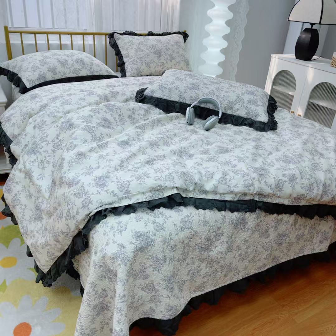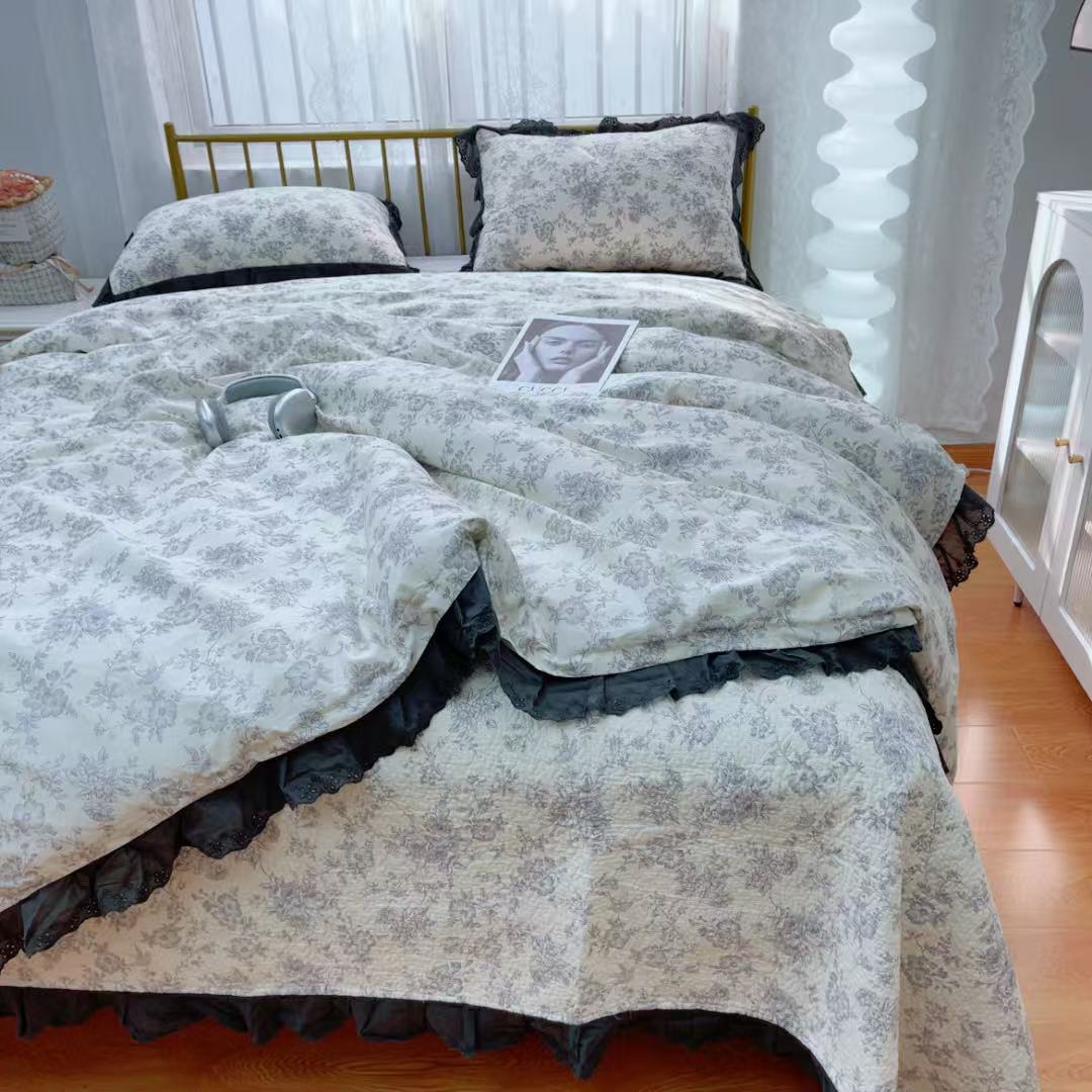 (总)暖居 2026新款支持定制法式花边纯棉榻榻米四件套全棉大炕盖三件套四季通用,白山茶,海盐兔,赫本白,晨暮间,灰格蝴蝶结,奶油点点,波点紫,豹纹KT,南法假日,浅咖,时尚小香,碎花兔蓝,旺仔紫色,小美好,小甜橘,小香格子,雅格,中国美
