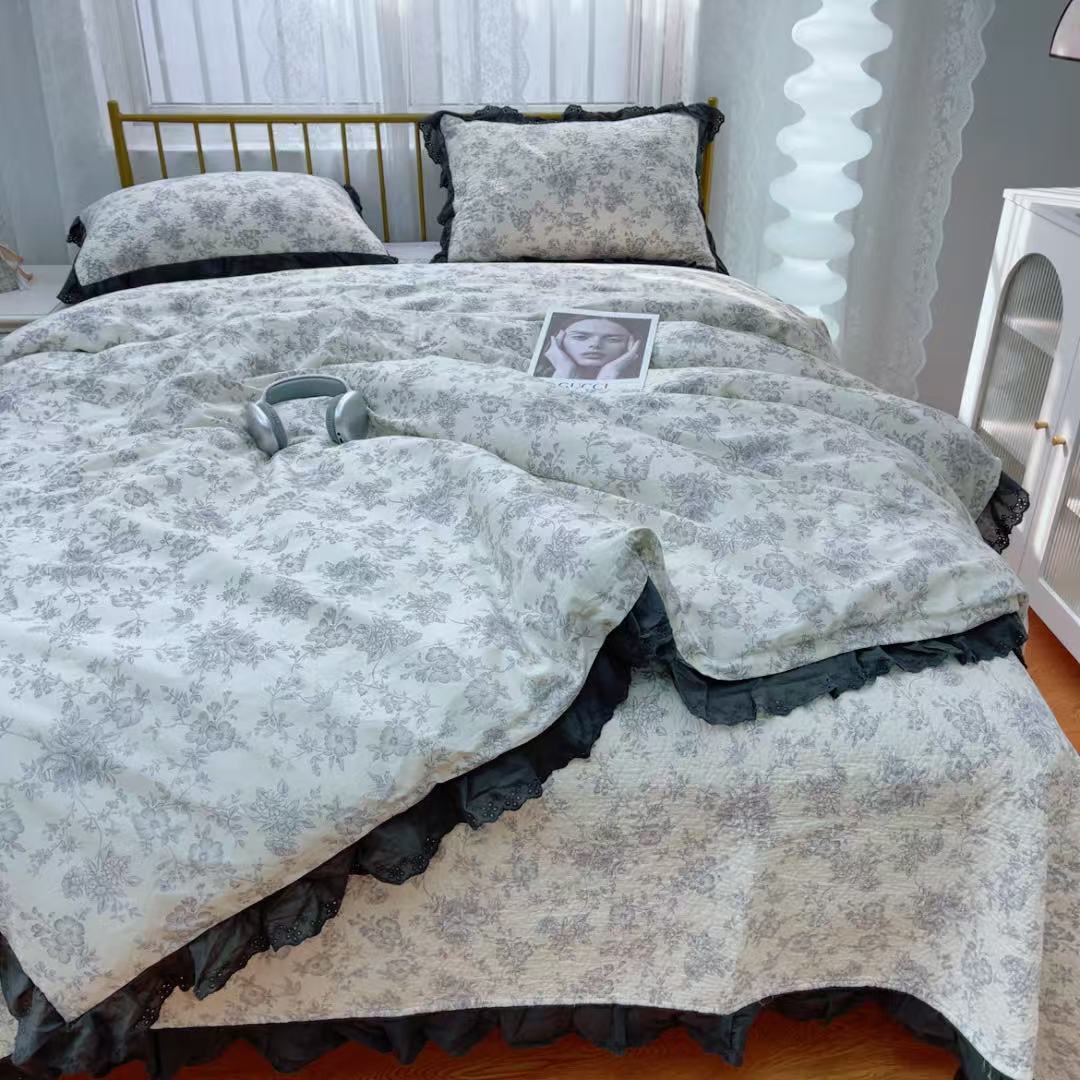 暖居 2025春夏款高温砂洗棉花床盖三件套被套四件套同款纯棉夏被空调被四季 白山茶