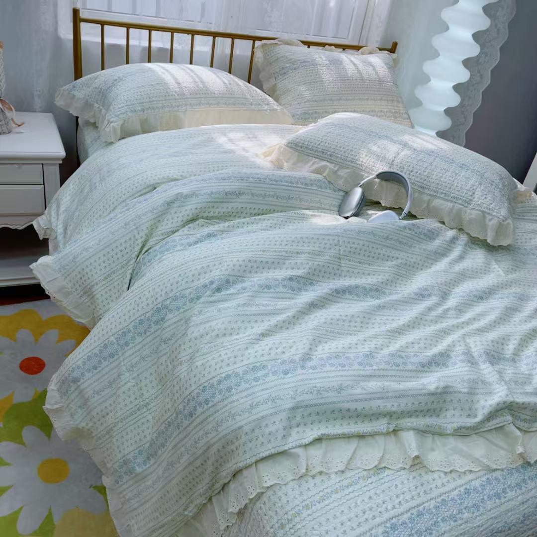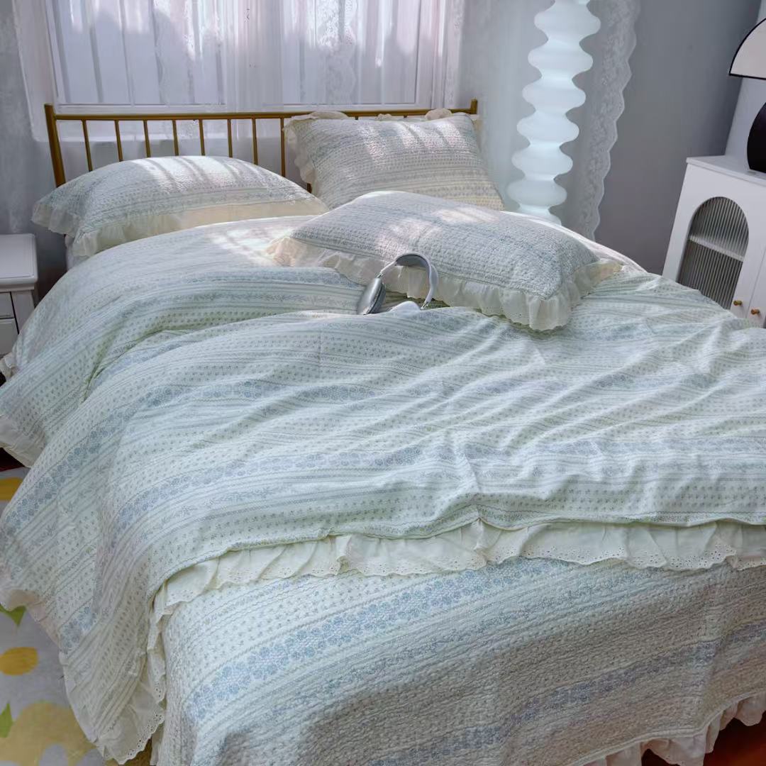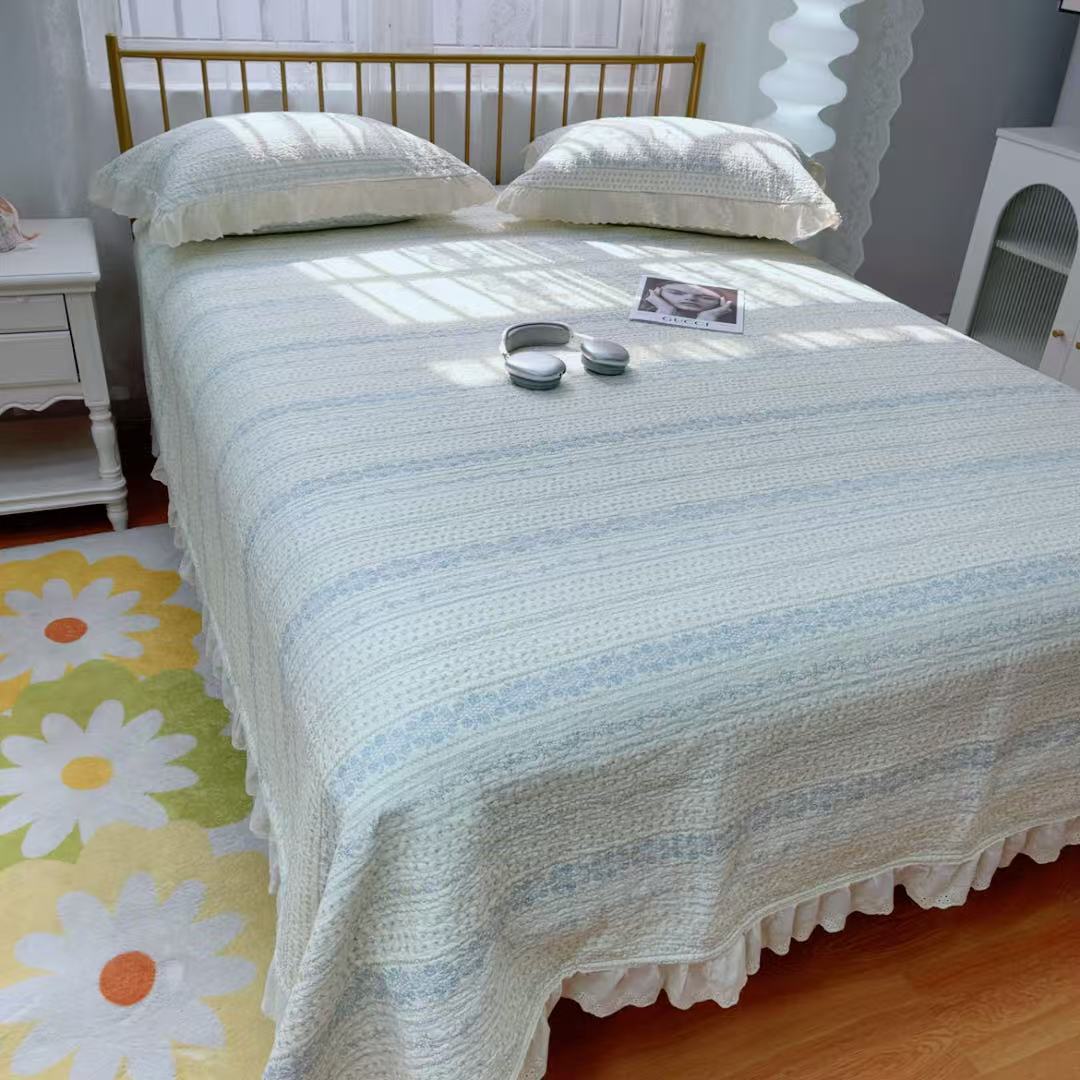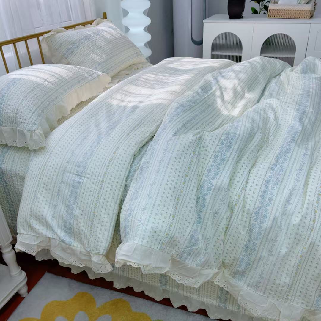 暖居 2025春夏款高温砂洗棉花床盖三件套被套四件套同款纯棉夏被空调被四季 蓝颜