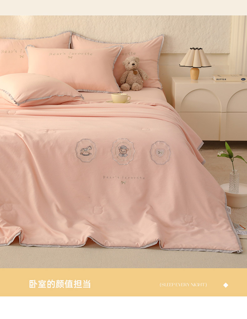 当前位置: 91家纺网 > 商品网购 > 床品套件 > 四件套 > 夏被四件套 > 绒世界 绒世界 2025新款针织棉刺绣加花边小熊系列夏被四件套 小熊-丁香粉