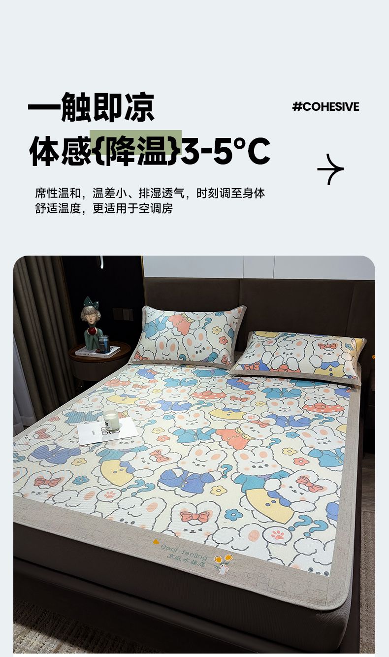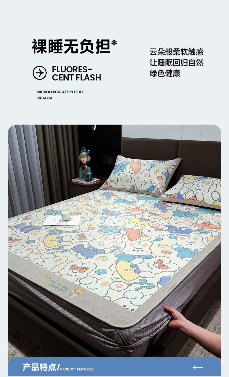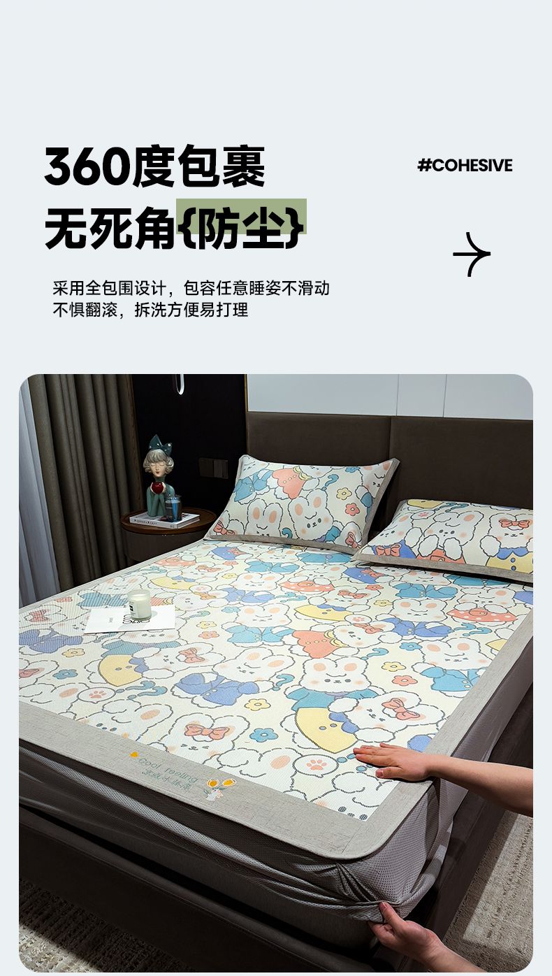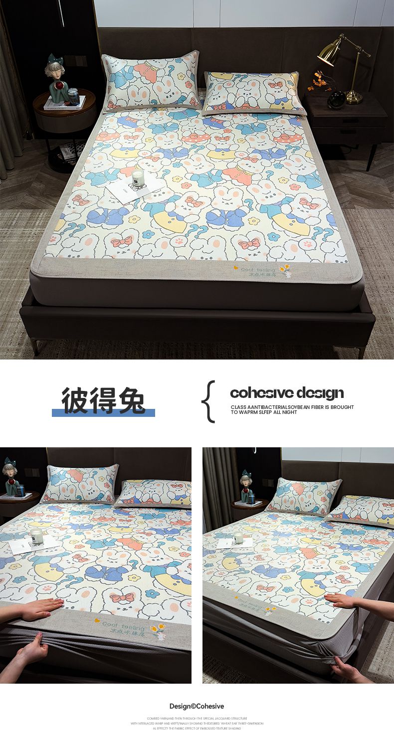 摩妮卡 2026新款数码印花凉席冰藤席床笠款三件套 彼得兔