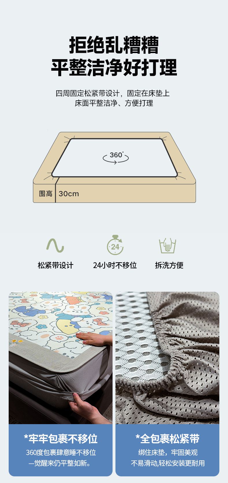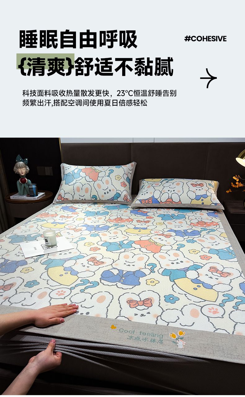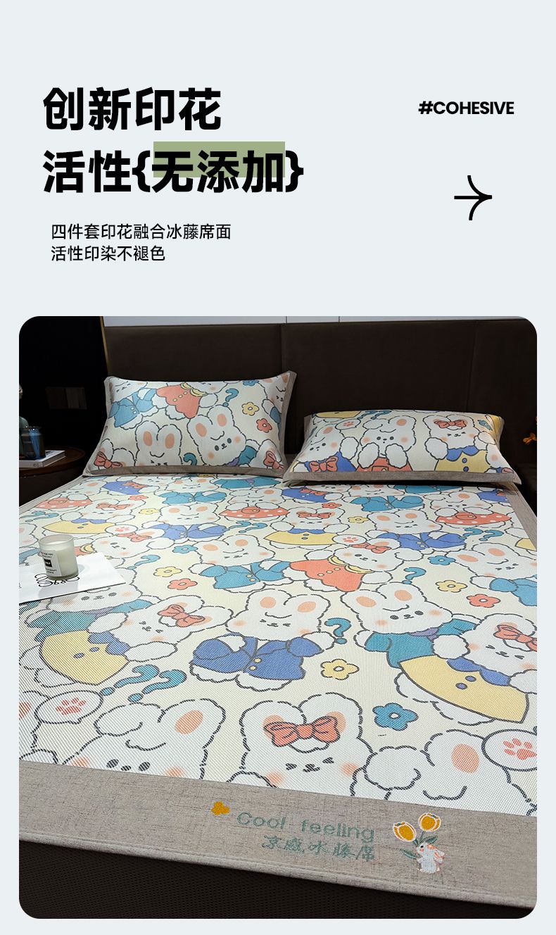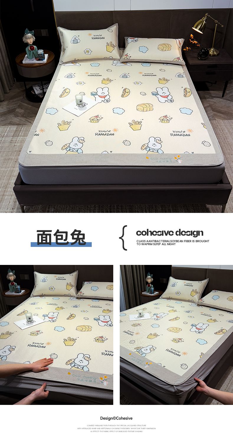 摩妮卡 2026新款数码印花凉席冰藤席床笠款三件套 彼得兔