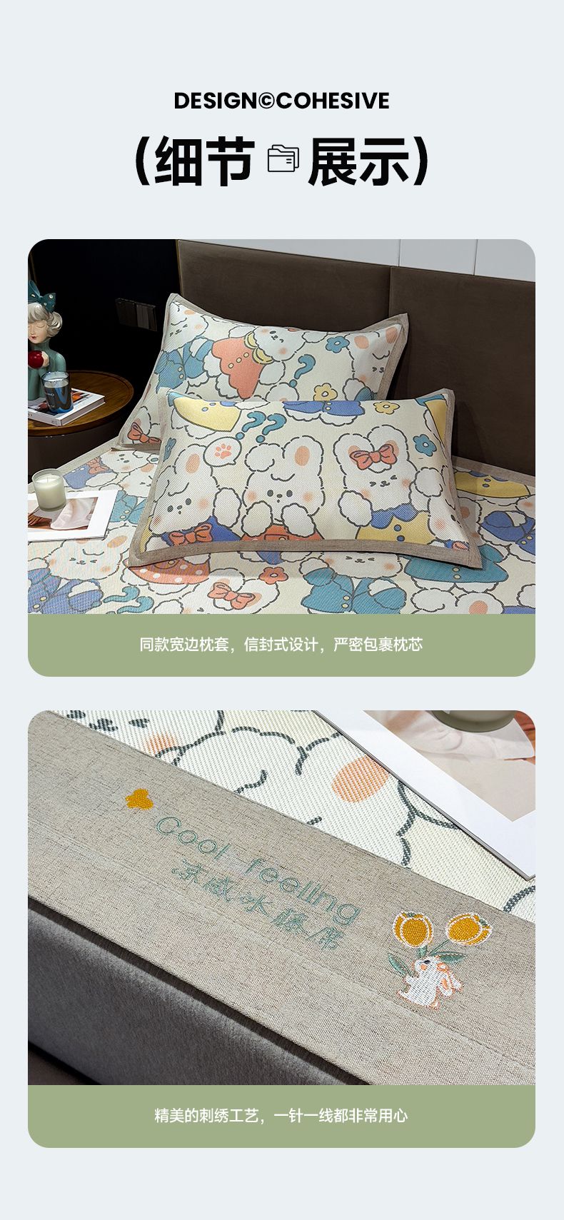 (总)摩妮卡 2026新款绣花冰丝软凉席上下铺冰丝席 三件套床笠,熊猫竹竹-冰兰,熊猫竹竹-灰,熊猫竹竹-咖,熊猫竹竹-蓝,熊猫竹竹-绿