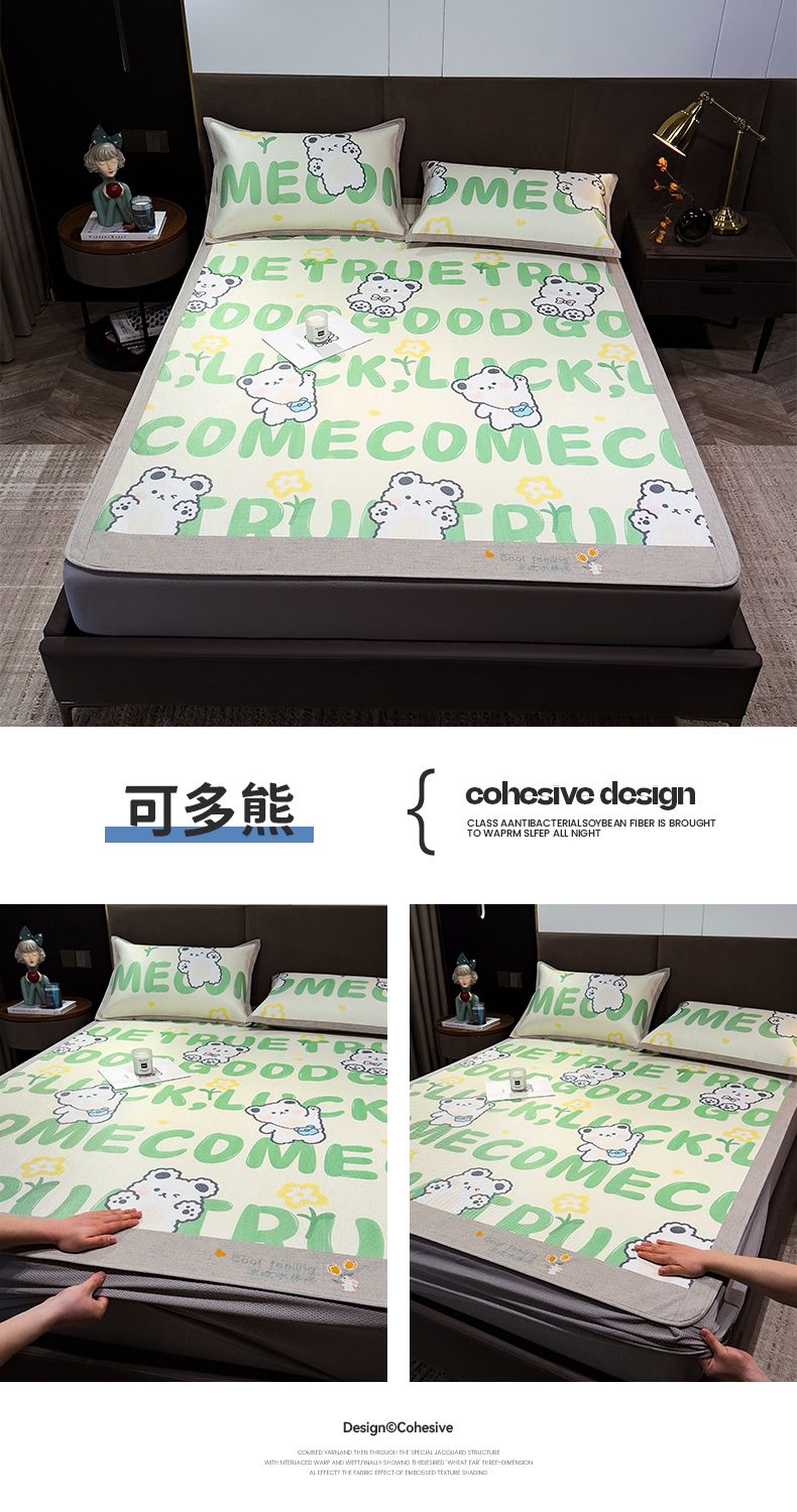 (总)摩妮卡 2026新款抗菌绣花冰藤席床席款,甜心小熊-灰,甜心小熊-咖,甜心小熊-蓝,甜心小熊-绿,甜心小熊-紫