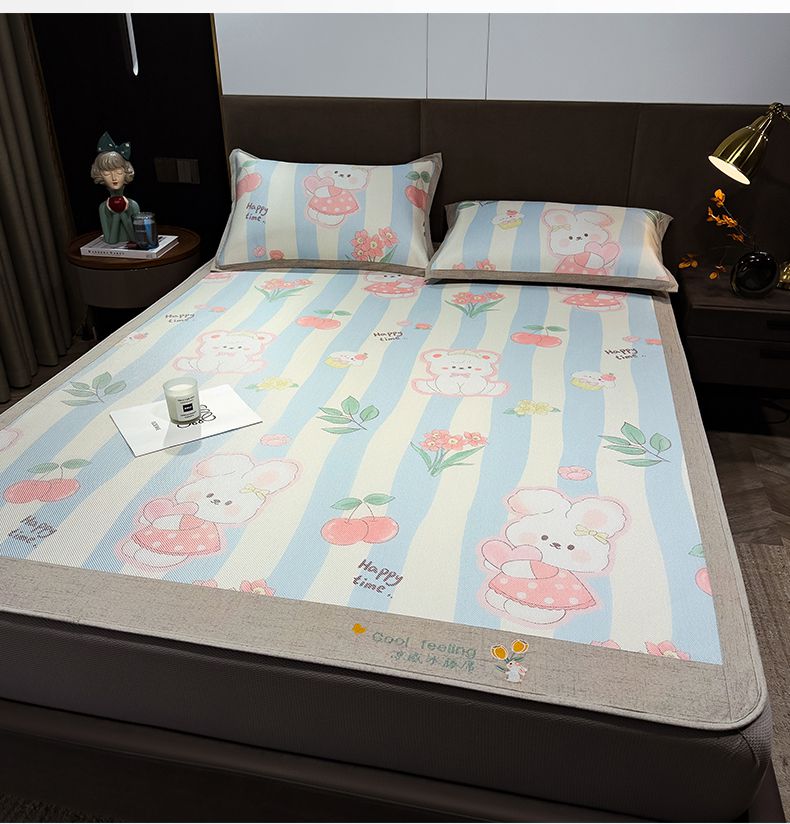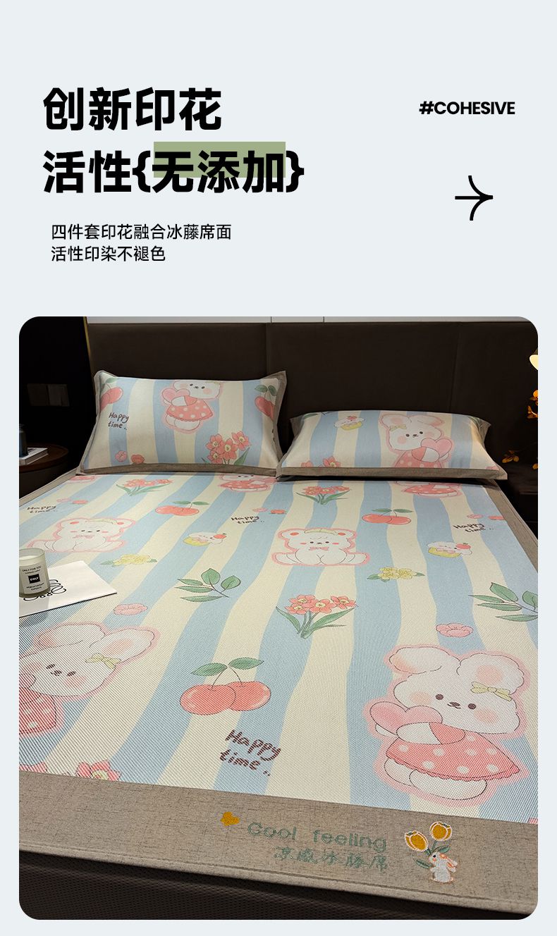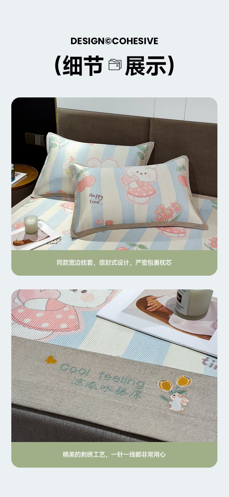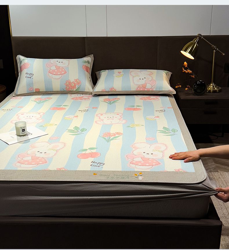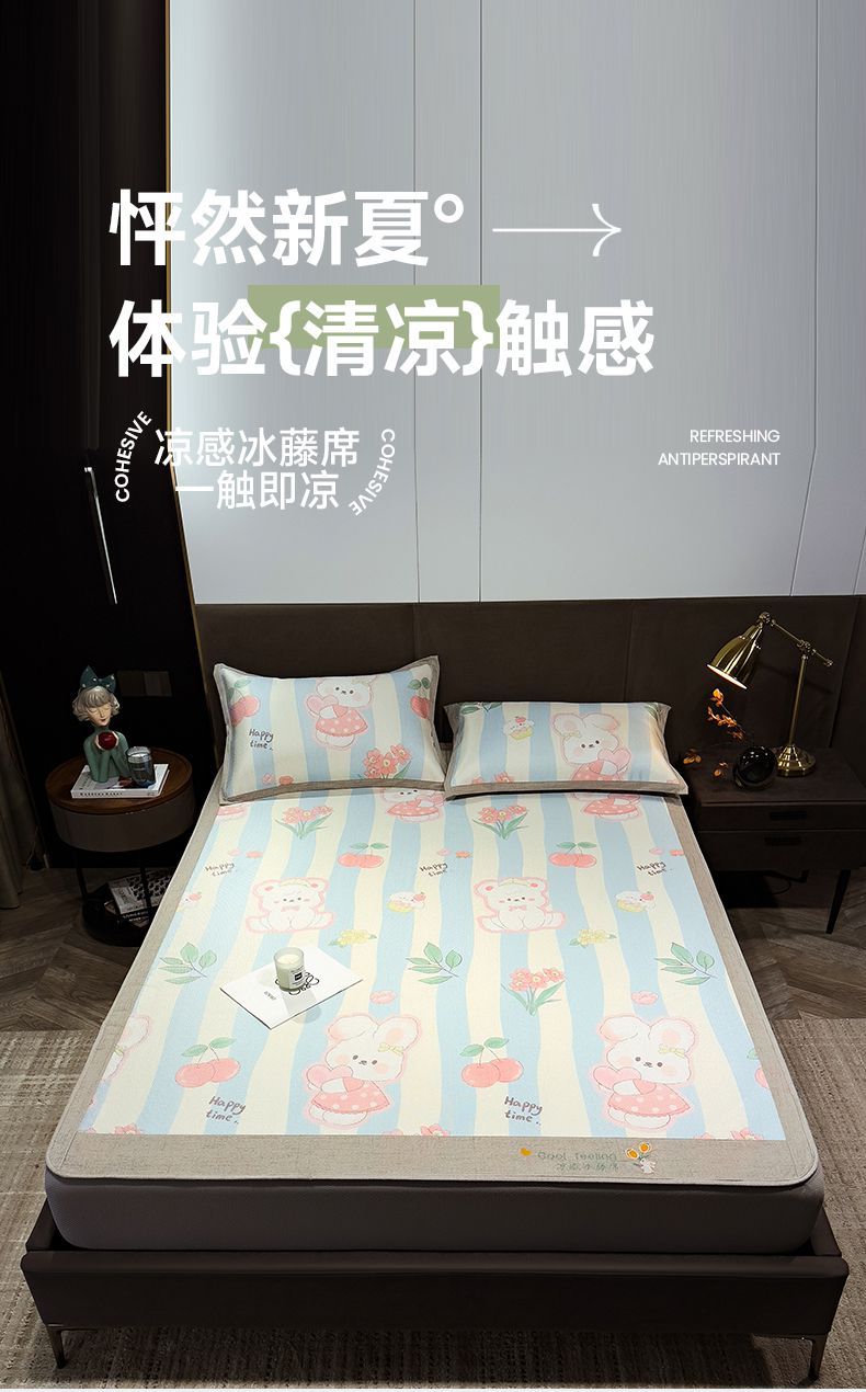 摩妮卡 2025新款数码印花凉席冰藤席床笠款三件套 嘻嘻兔