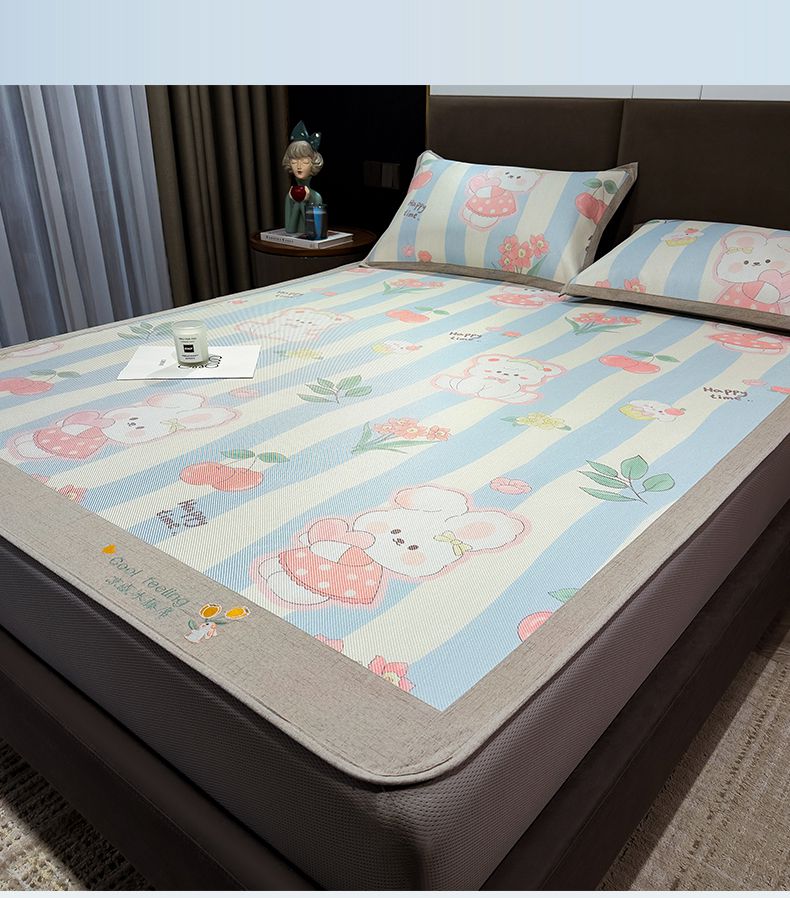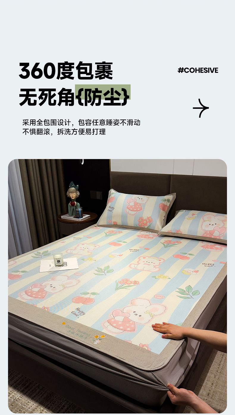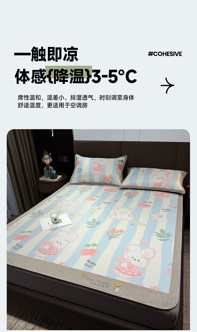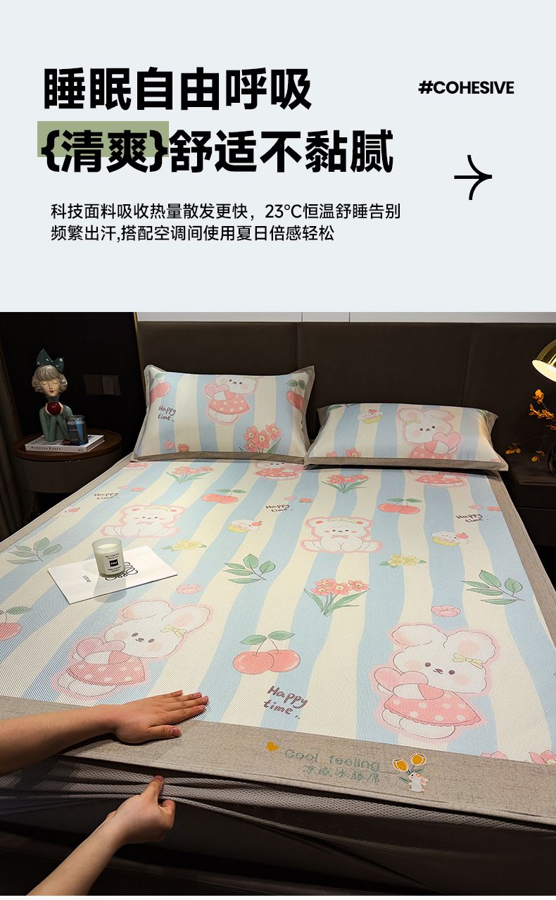 摩妮卡 2025新款数码印花凉席冰藤席床笠款三件套 嘻嘻兔