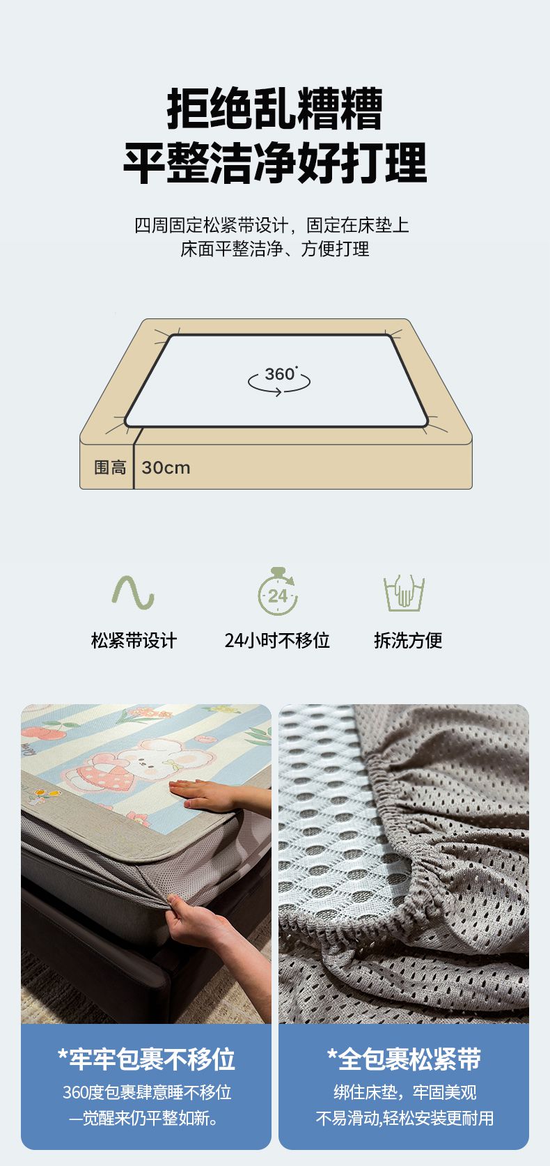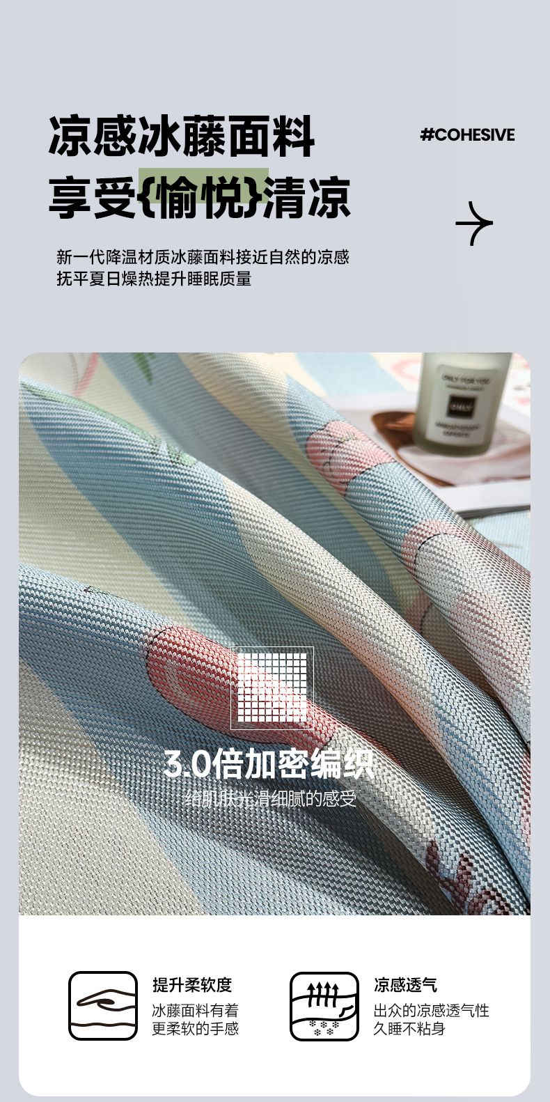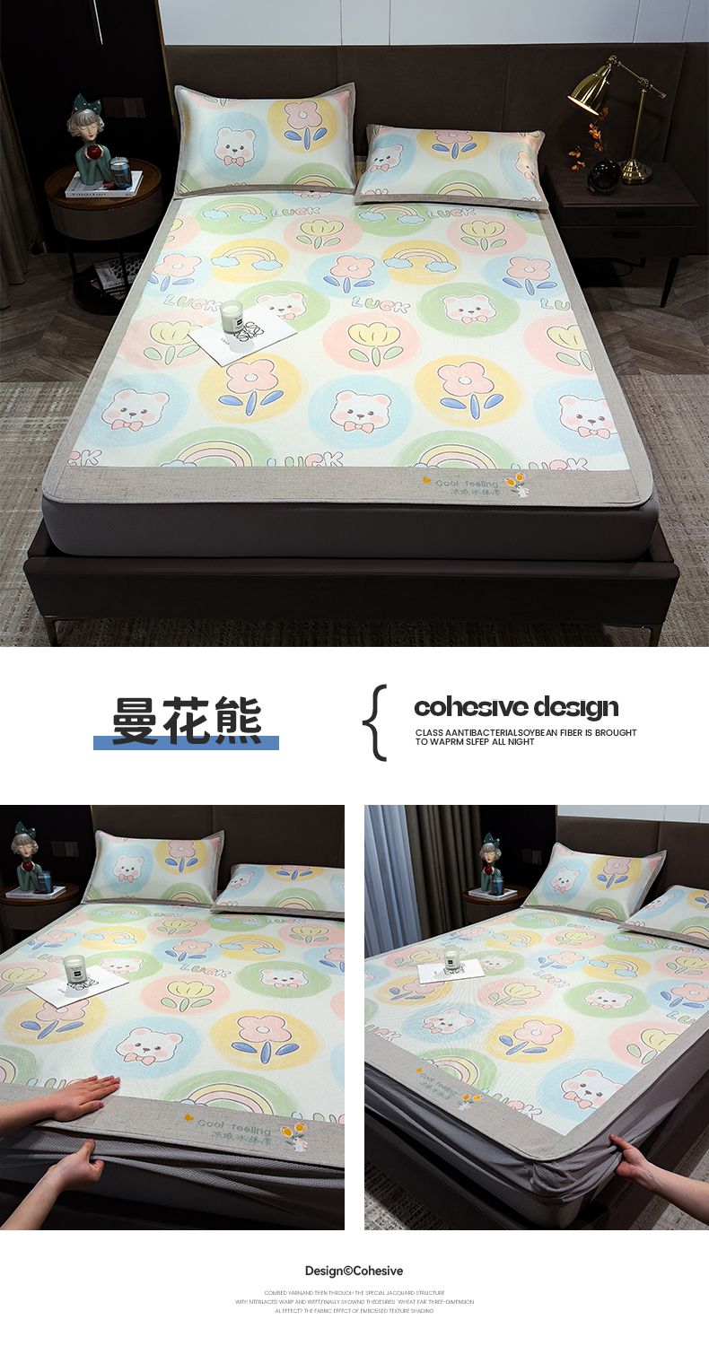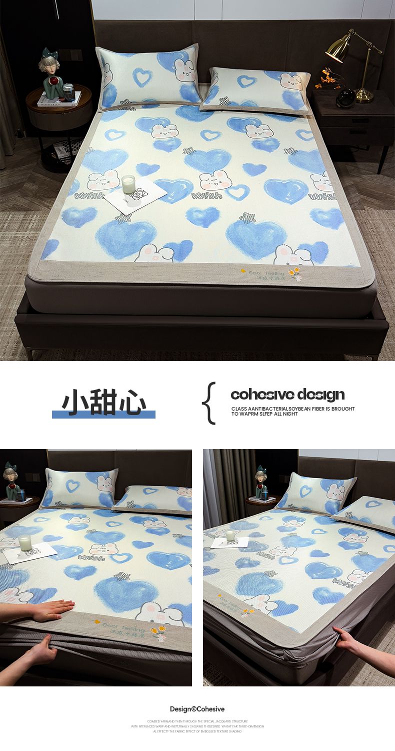 摩妮卡 2025新款数码印花凉席冰藤席床笠款三件套 嘻嘻兔