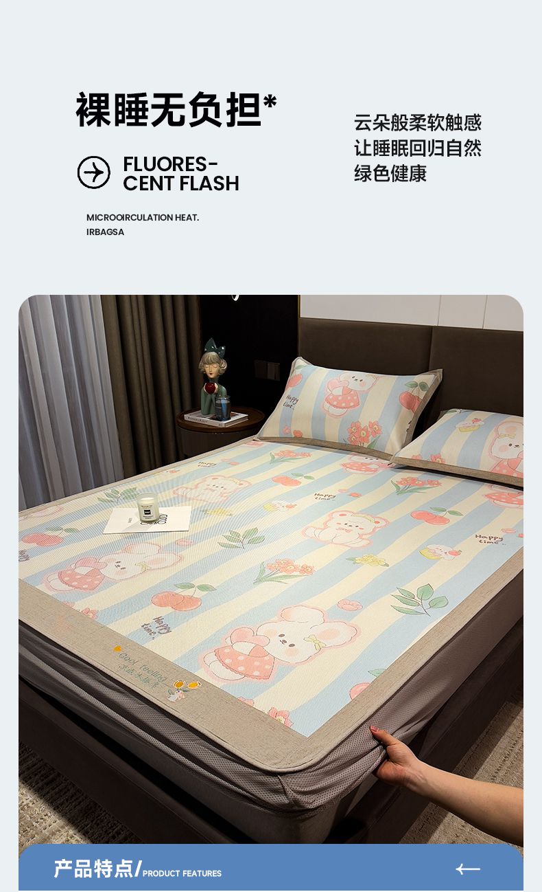 商品名称:摩妮卡 2025新款数码印花凉席冰藤席床笠款三件套 嘻嘻兔