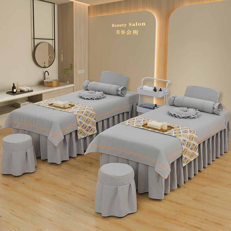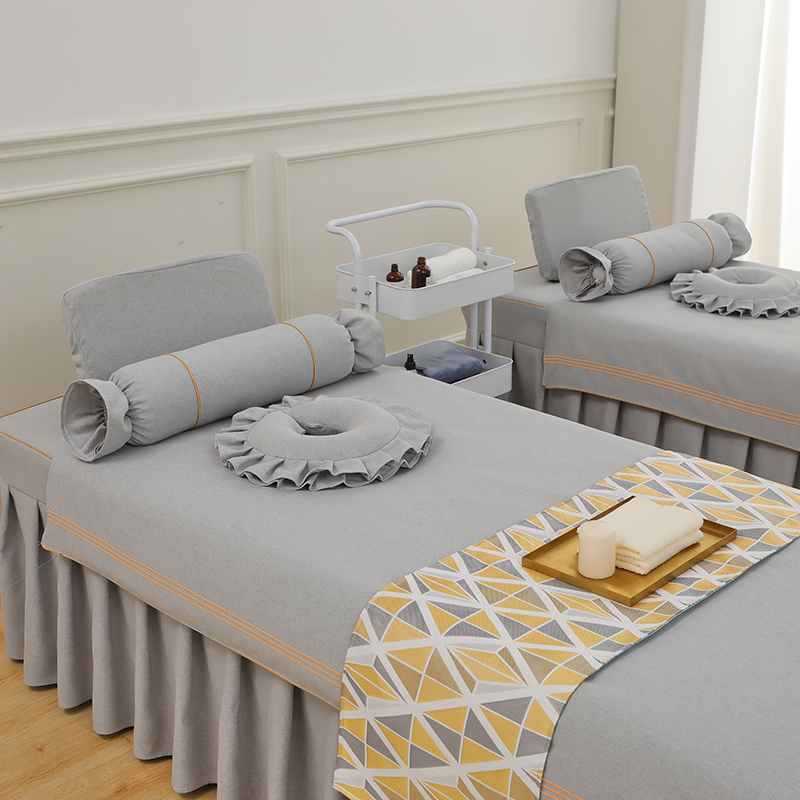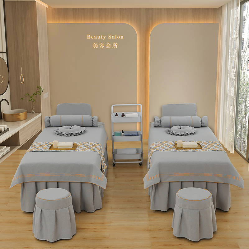 (总)芙怡 2025春夏新款8031款棉麻美容床罩四件套-未央系列,未央-蝶翅蓝,未央-格调 灰,未央-蜜桃 粉,未央-浅咖,未央-浅驼,未央-斑斓绿