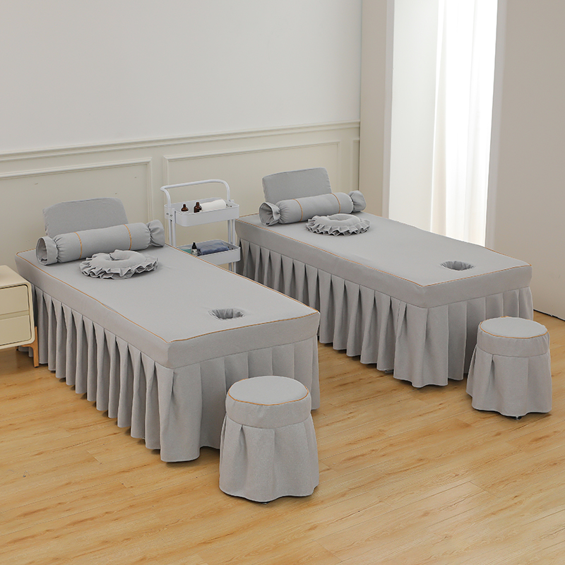 芙怡 2025春夏新款8026款棉麻绒美 容床罩-一字绣系列 一字绣-灰色