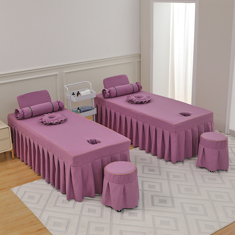 (总)芙怡 2025春夏新款8026款棉麻绒美 容床罩-角花系列,角花-紫色,角花-粉色,角花-米黄,角花-湖蓝,角花-灰色,角花-棕色,角花-白色