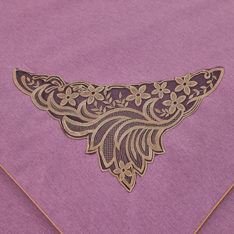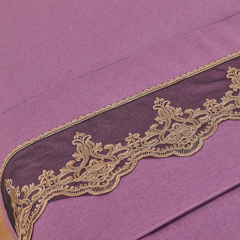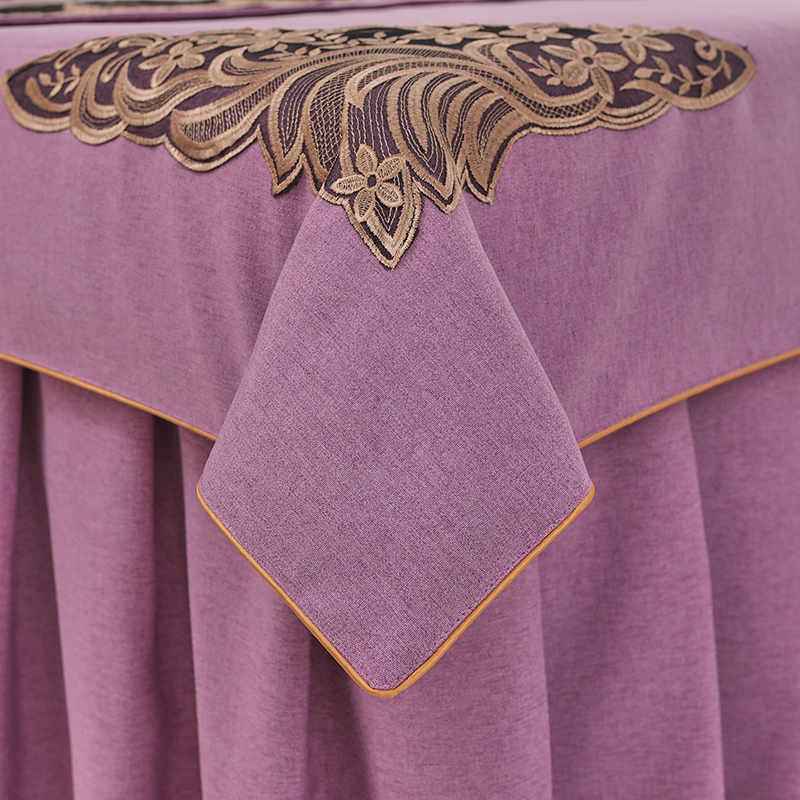 • 91家纺网 家纺一手货源 找家纺 芙怡 2025春夏新款8026款棉麻绒美 容床罩-角花系列 角花-紫色