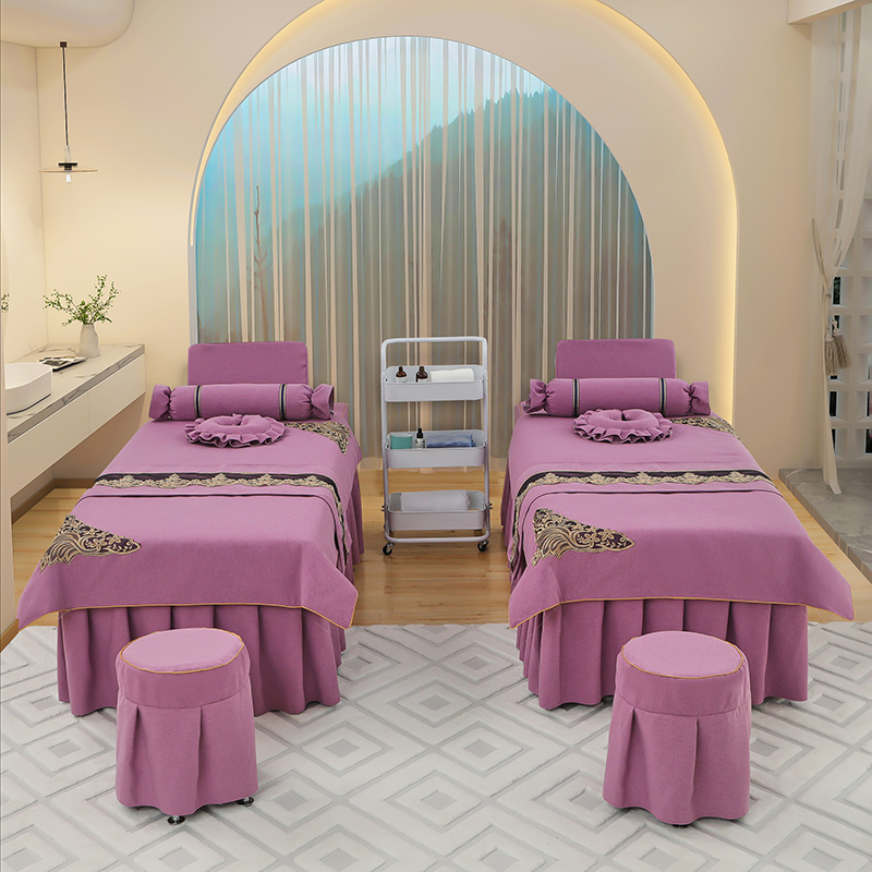 (总)芙怡 2025春夏新款8031款棉麻美容床罩四件套-未央系列,未央-蝶翅蓝,未央-格调 灰,未央-蜜桃 粉,未央-浅咖,未央-浅驼,未央-斑斓绿