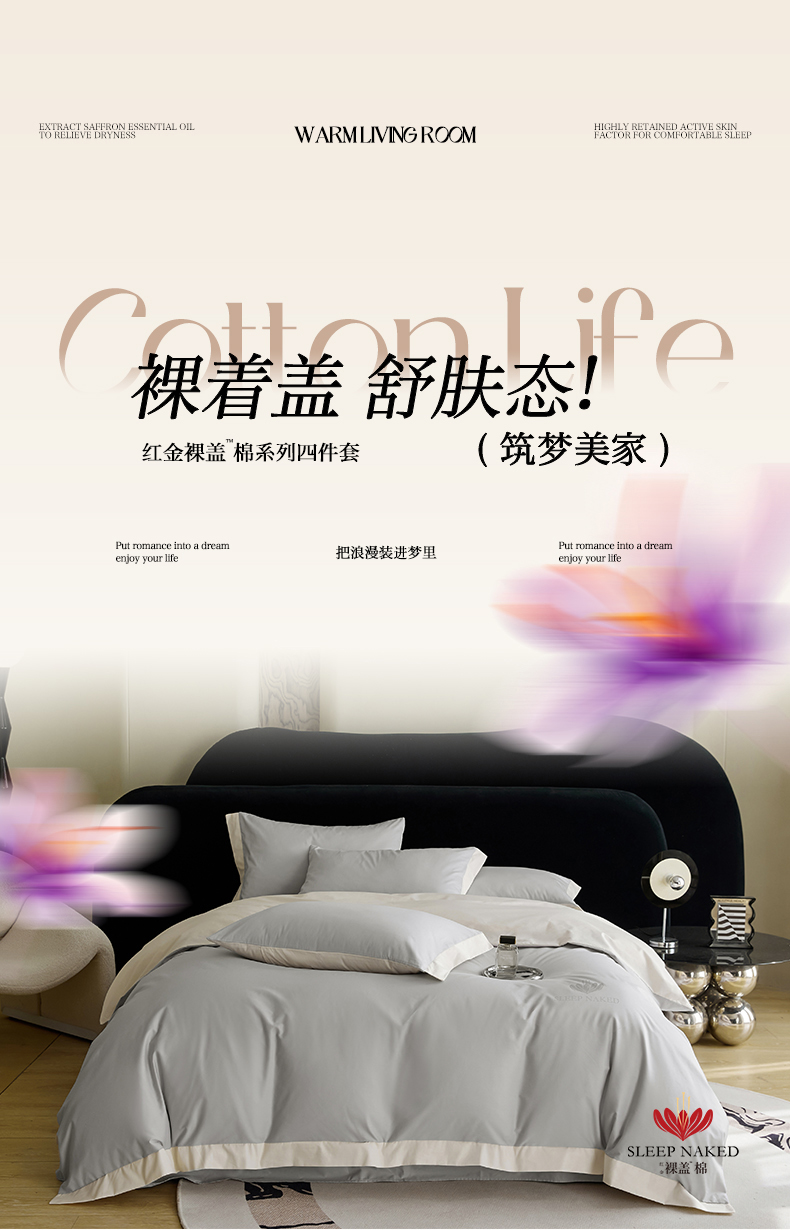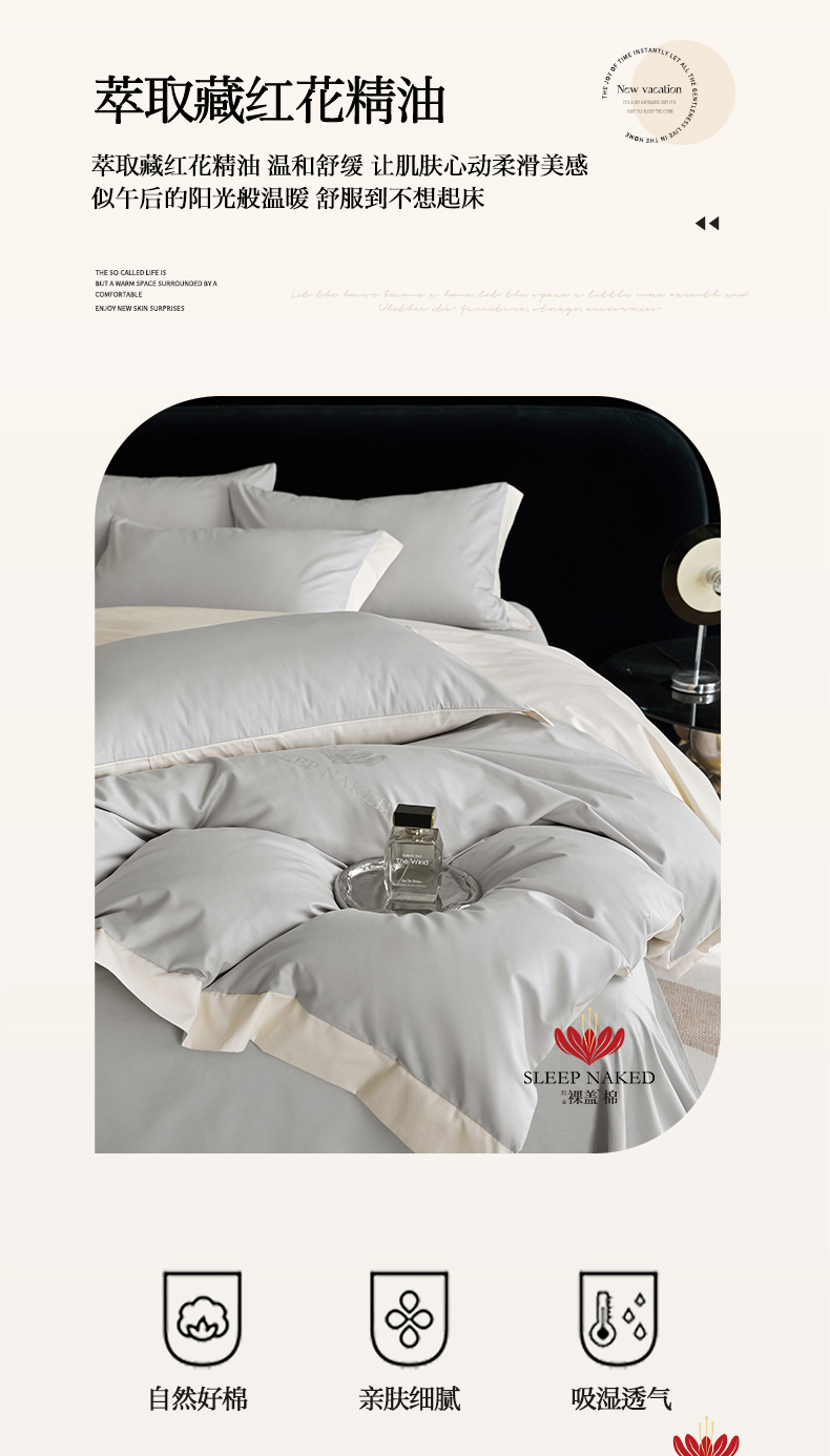 商品名称:金奇达家纺 2025春夏新款【特洛伊】红金裸盖™棉全棉纯棉红金裸盖棉四件套标准号全网控价(折后券后)不低于199元) 特洛伊-云烟灰