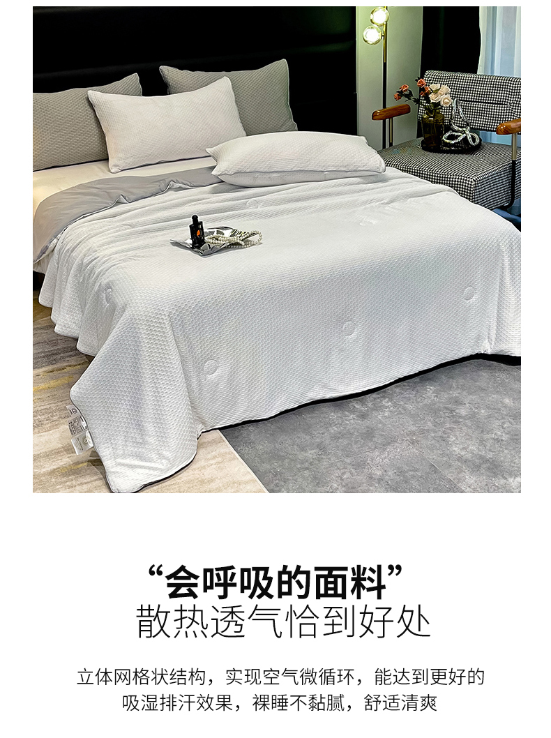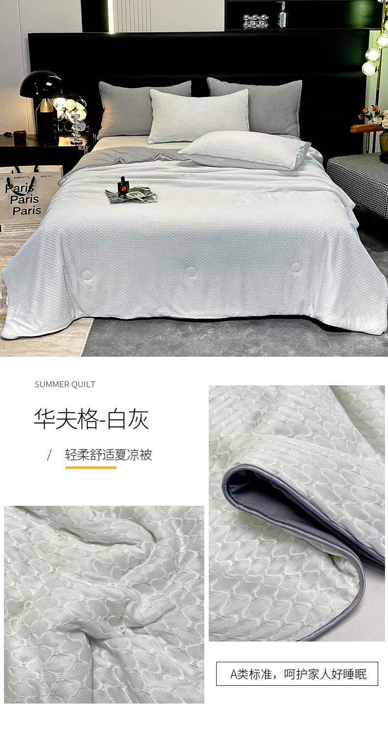 商品名称:经年 2025新款A类华夫格凉感丝夏被 华夫格-白灰