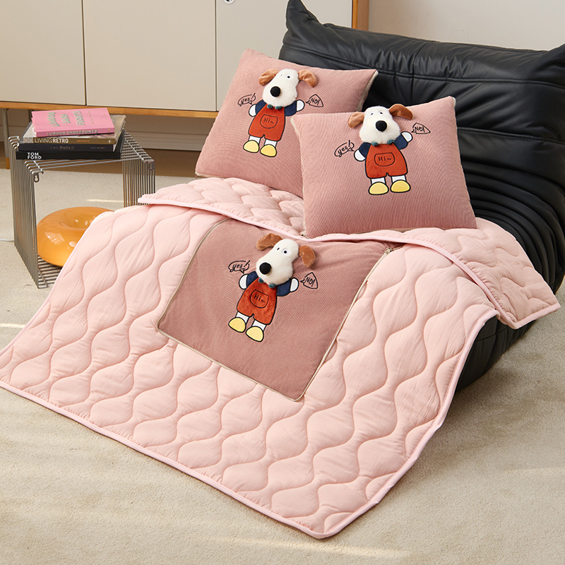 商品名称:枕芯真意 2025新款灯芯绒可爱立体卡通抱枕被被子被芯 豆沙粉-水洗棉