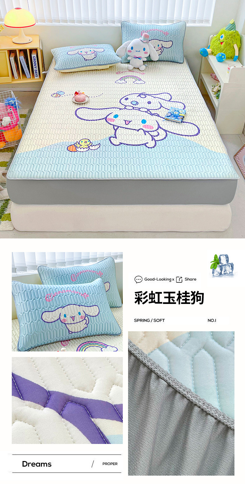 商品名称:米帛2025新款大版三丽鸥乳胶凉席-床笠款 彩虹玉桂狗