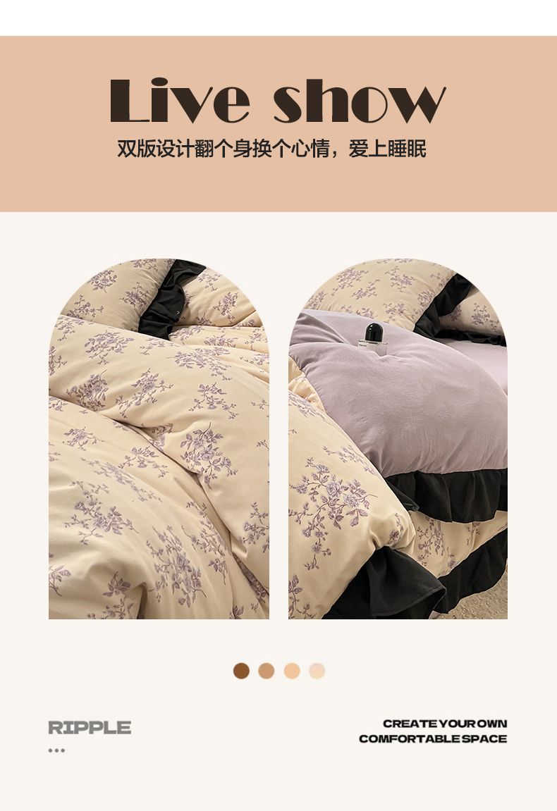 (总)首尔家纺 2025新款牛奶绒法式数码印花花边款四件套,绒-玉芙蓉琥珀色,绒-薄雾玫瑰,绒-流金岁月,绒-玉芙蓉烟青