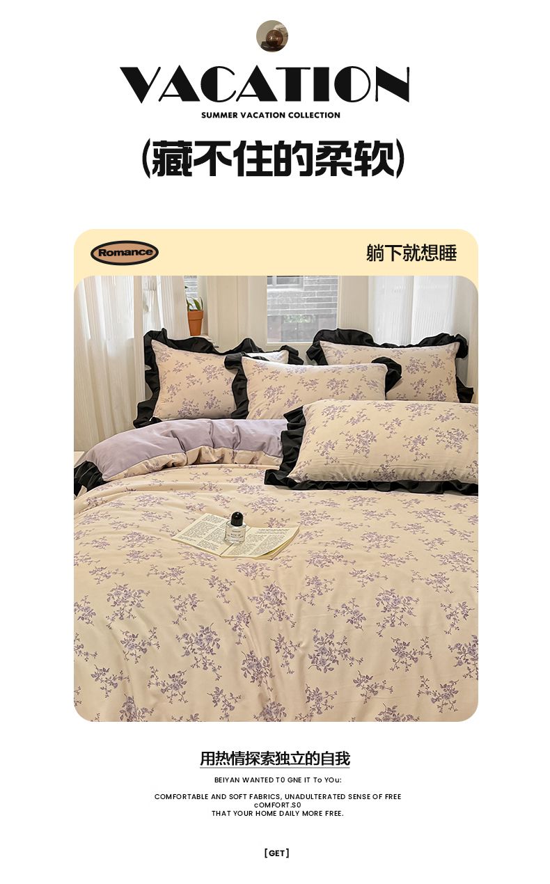 (总)首尔家纺 2025新款牛奶绒法式数码大版四件套,半亩花田,棉麻印象,甜蜜樱桃,邂逅玫瑰