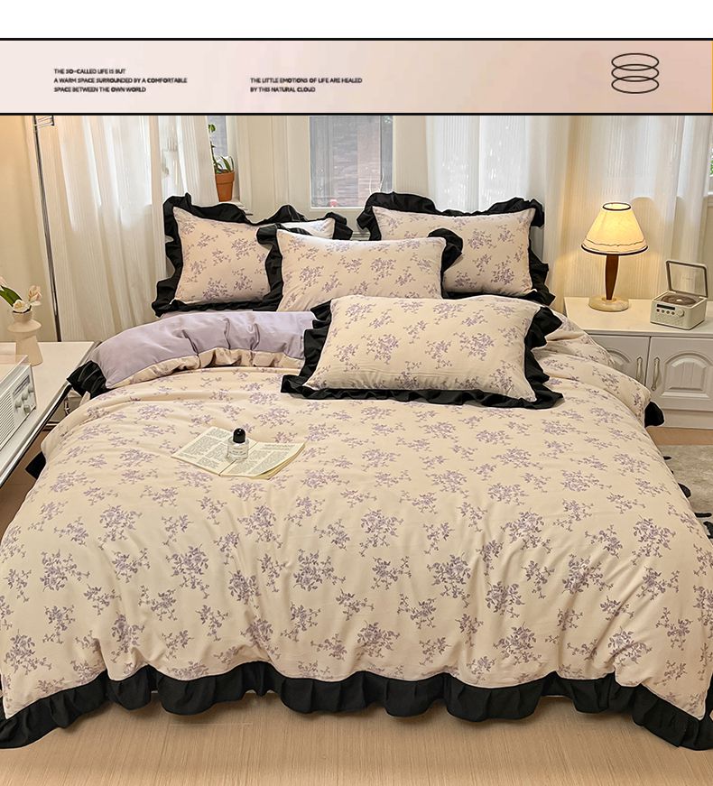 商品名称:首尔家纺 2025新款针织双层纱四件套系列 薰衣草