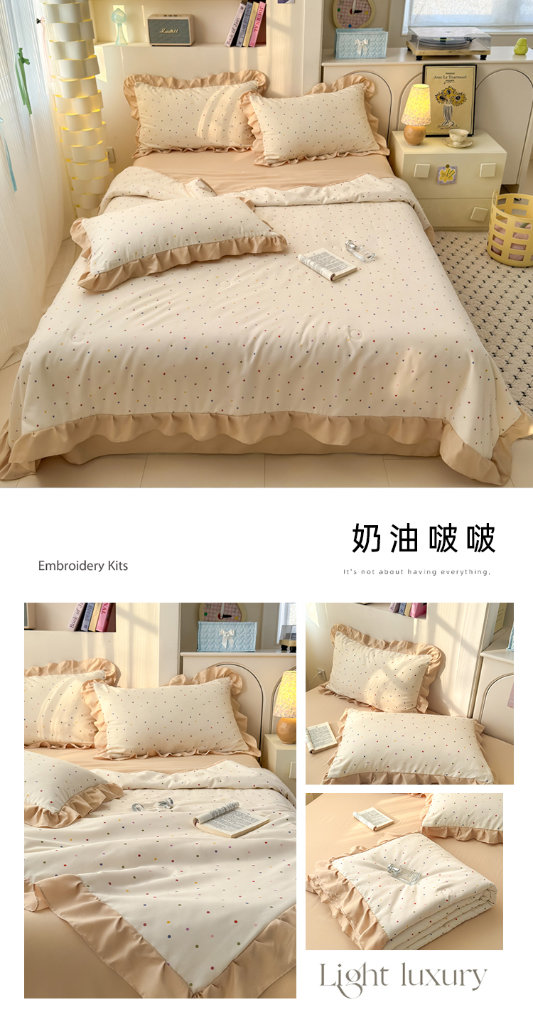 商品名称:德比尔斯 2025新款针织双层纱单夏被夏被四件套 奶油啵啵