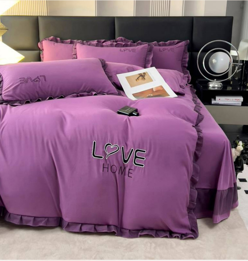找底底 2025新款亲肤舒适云朵棉刺绣四件套 紫色