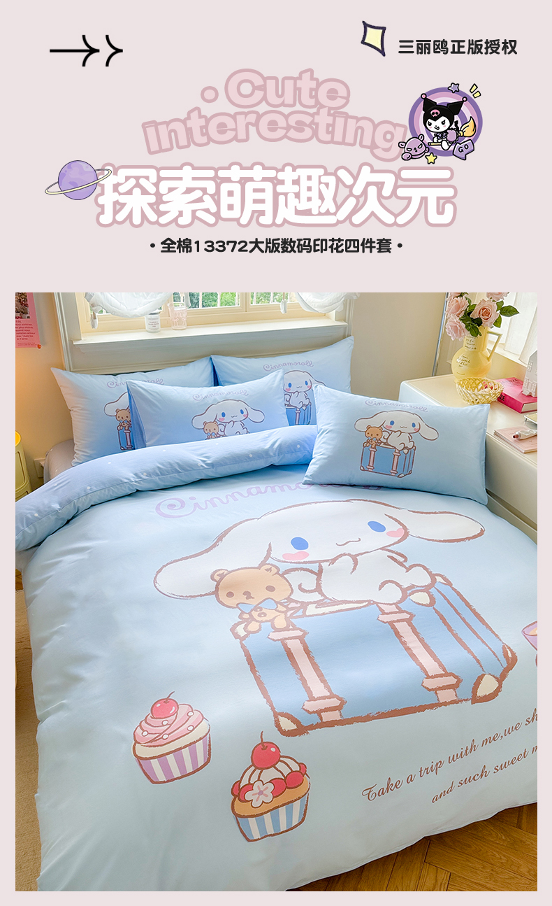 当前位置: 91家纺网 > 商品网购 > 床品套件 > 四件套 > 全棉普通四件套 > 2025新款大版三丽鸥全棉数码印花四件套【含防伪标】 旅行玉桂狗