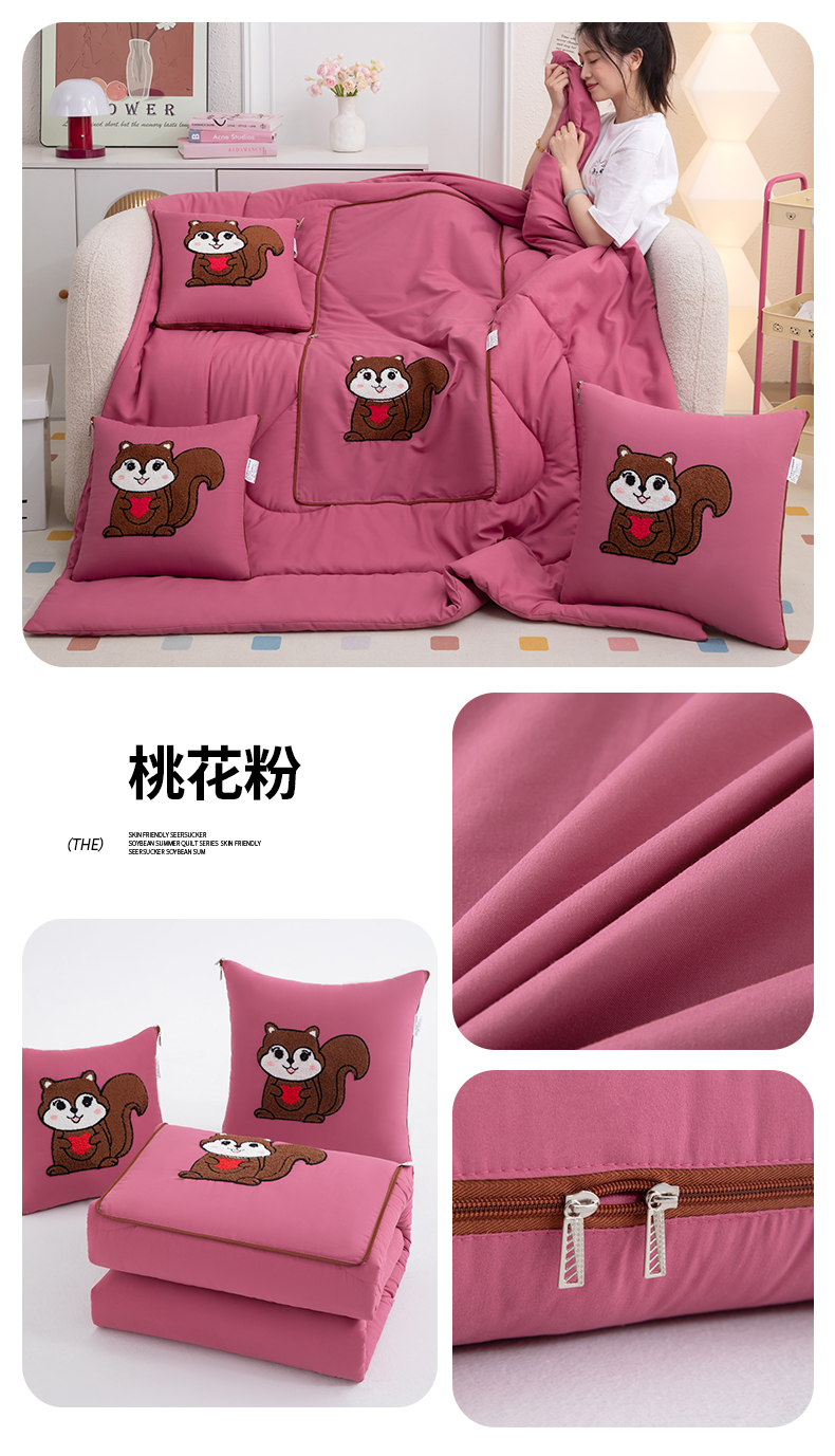 商品名称:宝马家纺(原梦童画)2025新款四季款磨毛毛巾绣小松鼠抱枕被 桃花粉
