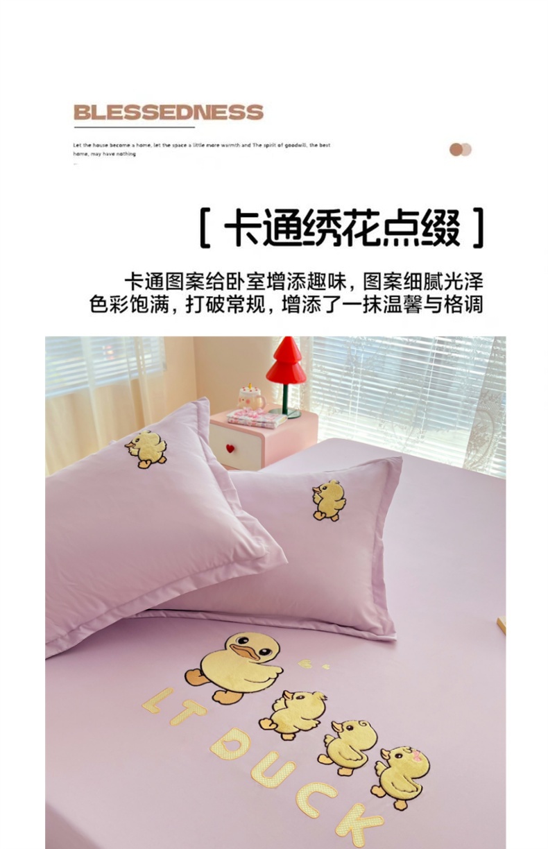 商品名称:梦舒羽 2025新款贴布绣针织棉双层纱枕套 旅行鸭-香芋紫