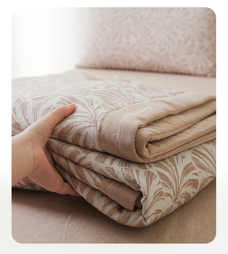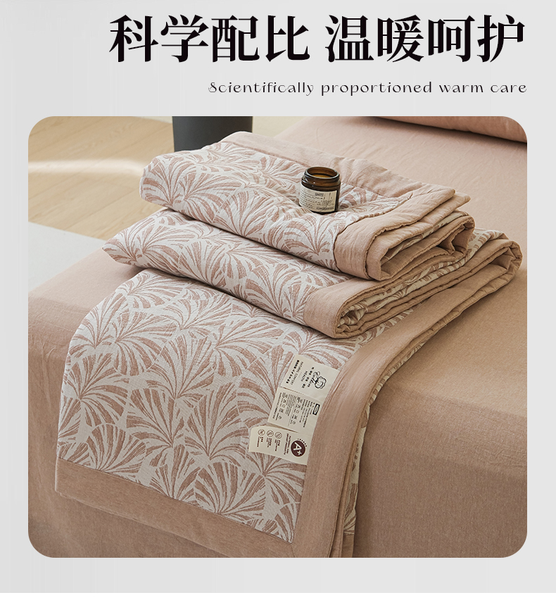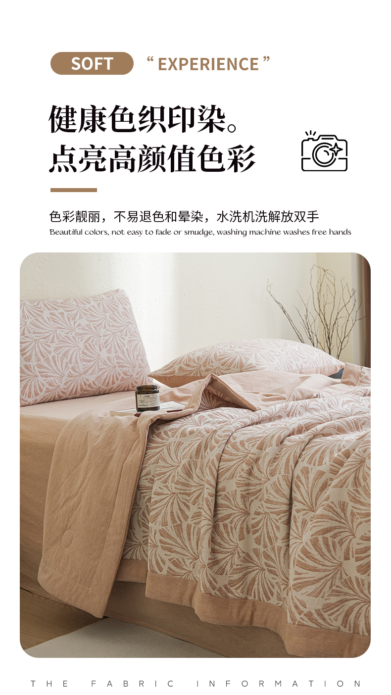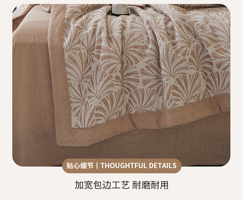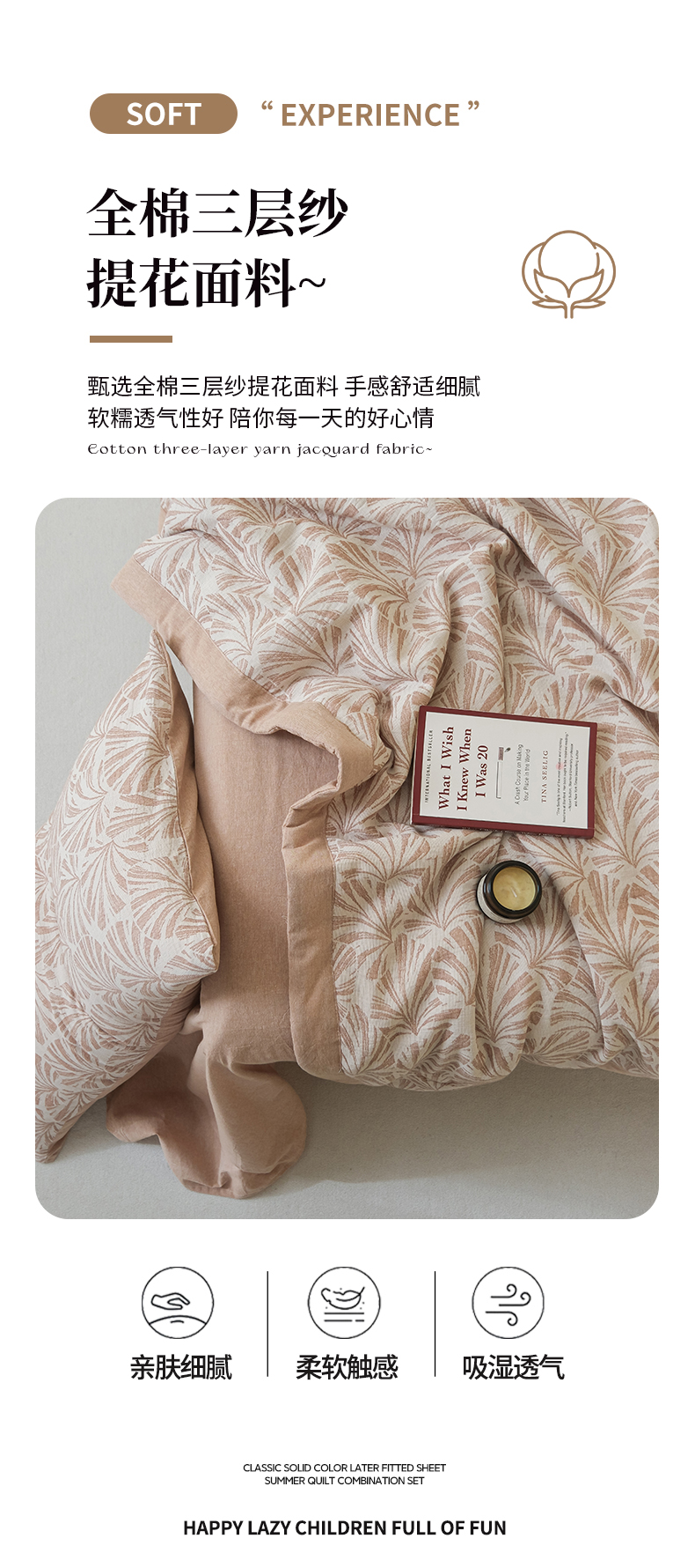 • 91家纺网 家纺一手货源 找家纺 优被业 2025新款A类全棉中古风全棉三层纱提花大豆夏被 灵叶-咖