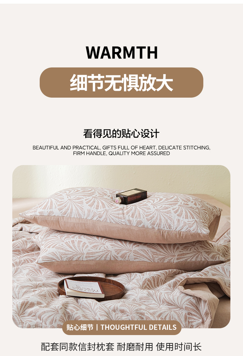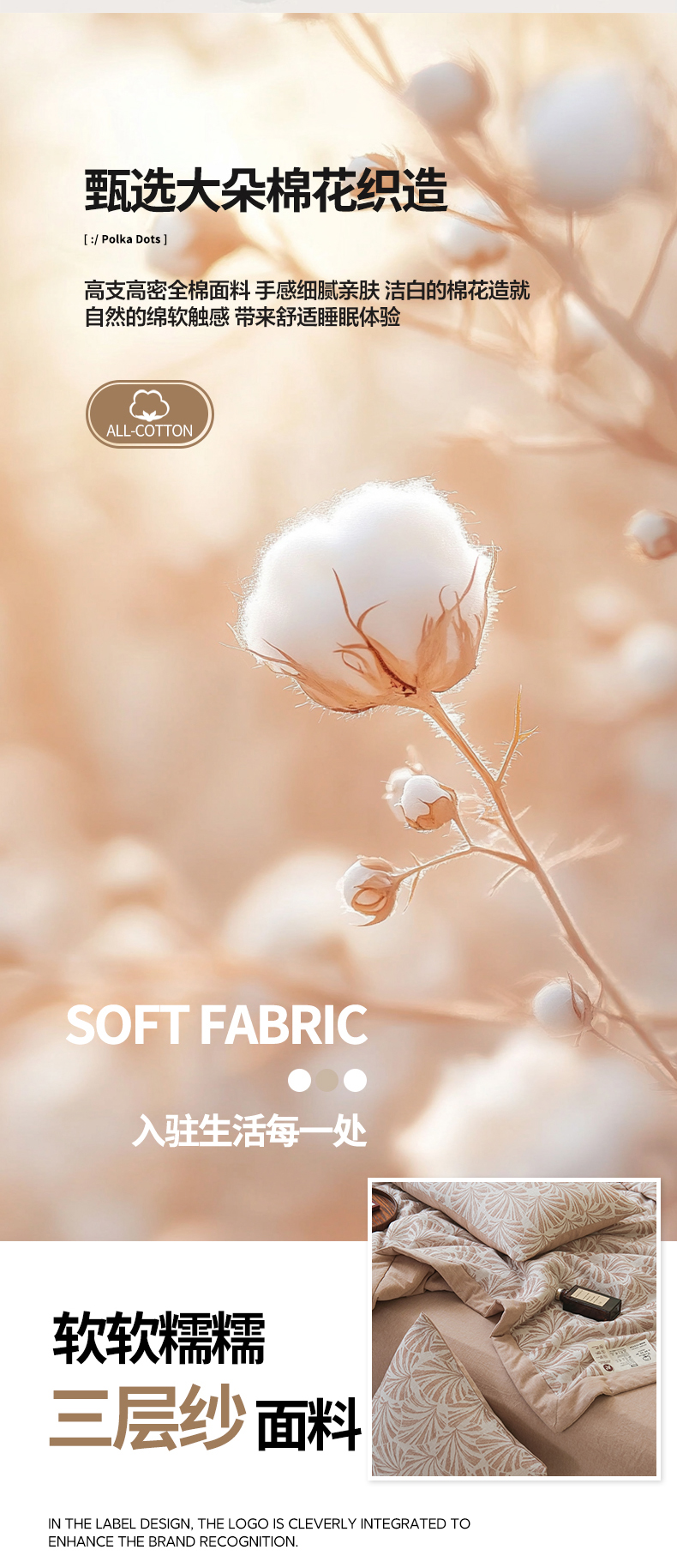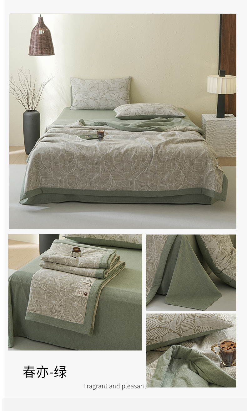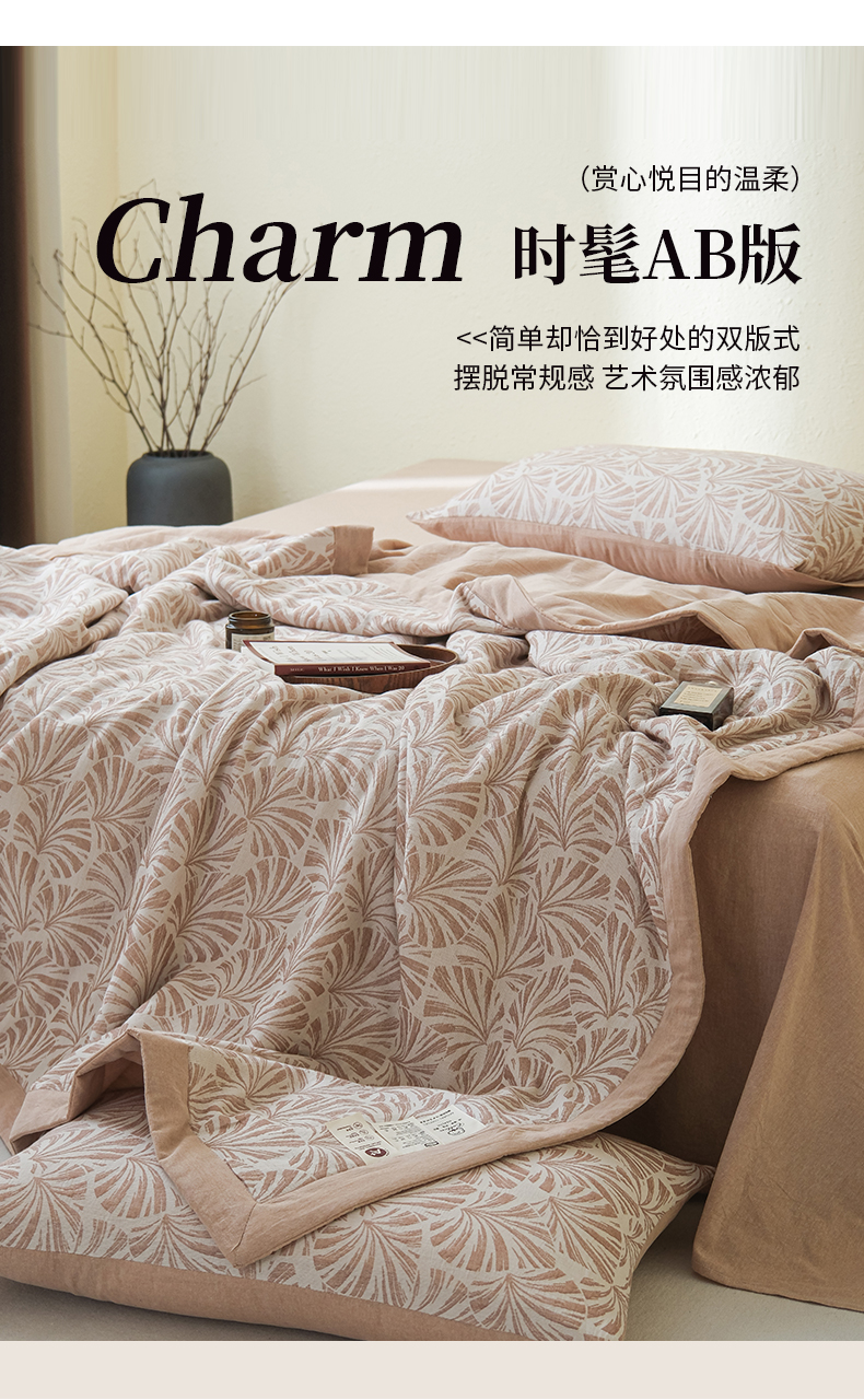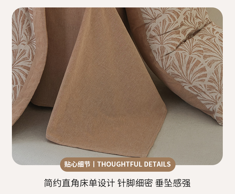 • 91家纺网 家纺一手货源 找家纺 优被业 2025新款A类全棉中古风全棉三层纱提花大豆夏被 灵叶-咖