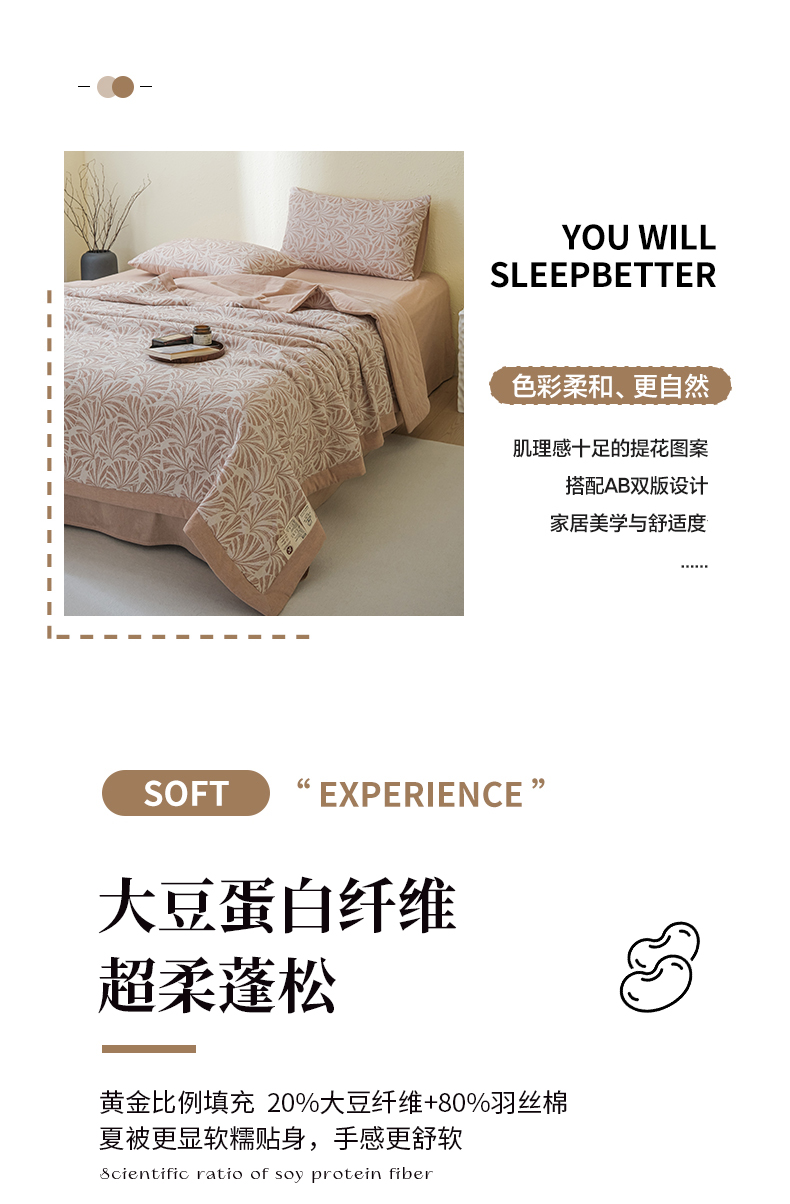 当前位置: 91家纺网 > 商品网购 > 被子 > 夏被 > 优被业 2025新款A类全棉中古风全棉三层纱提花大豆夏被 灵叶-咖