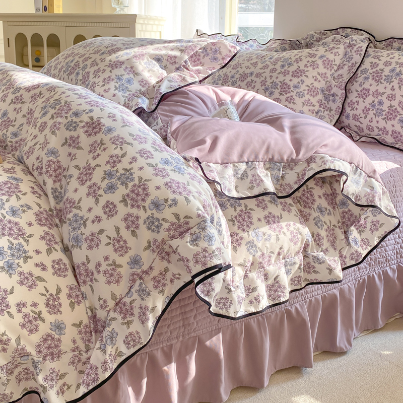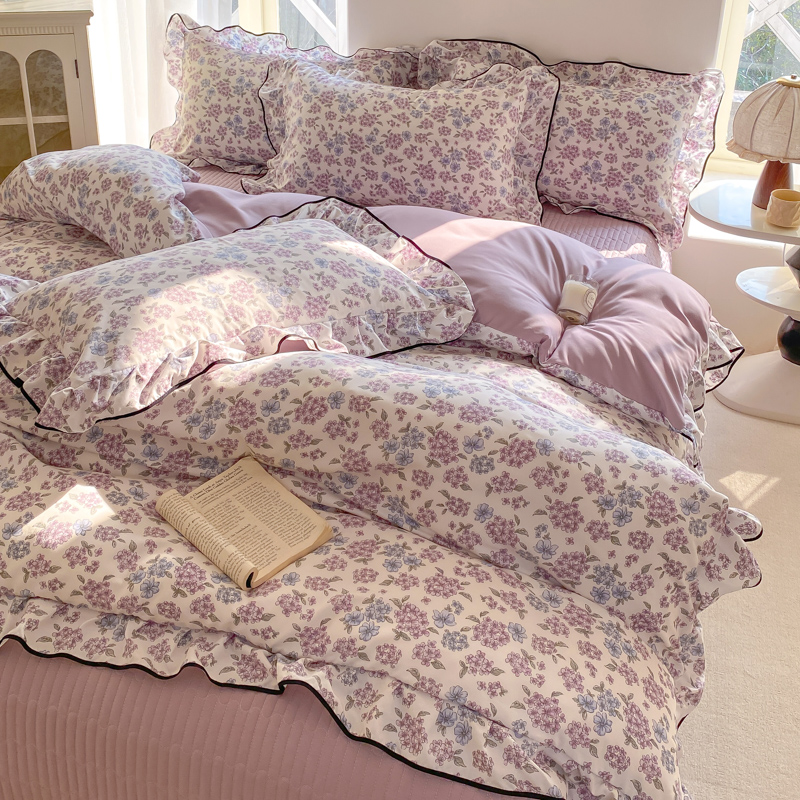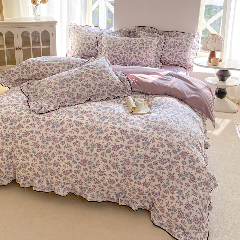 (总)一比一家纺 2025新款古法水洗棉全棉花边蝴蝶结四件套,组合图仅供展示,艾薇,花开满园,静初,可可庄园,绿野仙踪,觅秋,暮归十里,雅集,雅漫花语,悠然雅居,鸢尾兰,紫郁