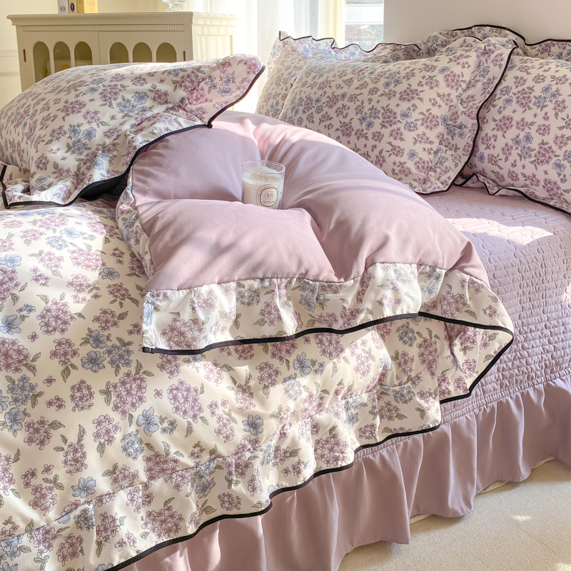 (总)一比一 2026新款云感皱皱双层纱四件套-全棉花边款【控价99元销售】,半夏绿,百福蓝,薄荷微凉,春风里,春晓,豆蔻,蝴蝶梦,可颂,兰黛,山野栀子,素颜,太妃糖,心动,遇见,芝士奶酪,紫爱心,紫苏,花园兔,蜡笔画,小黑兔,白茶-绿,初恋,莱茵河畔,桃花诺