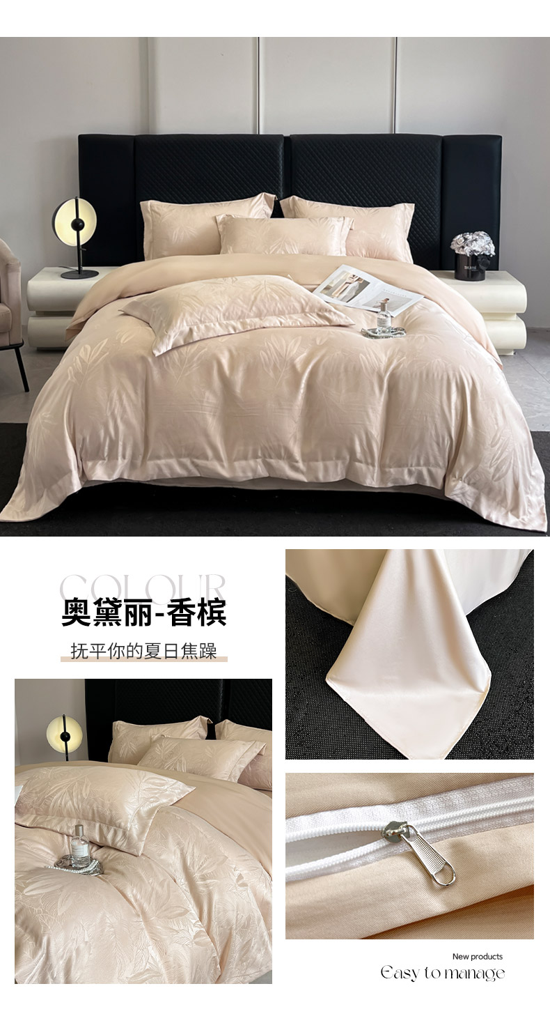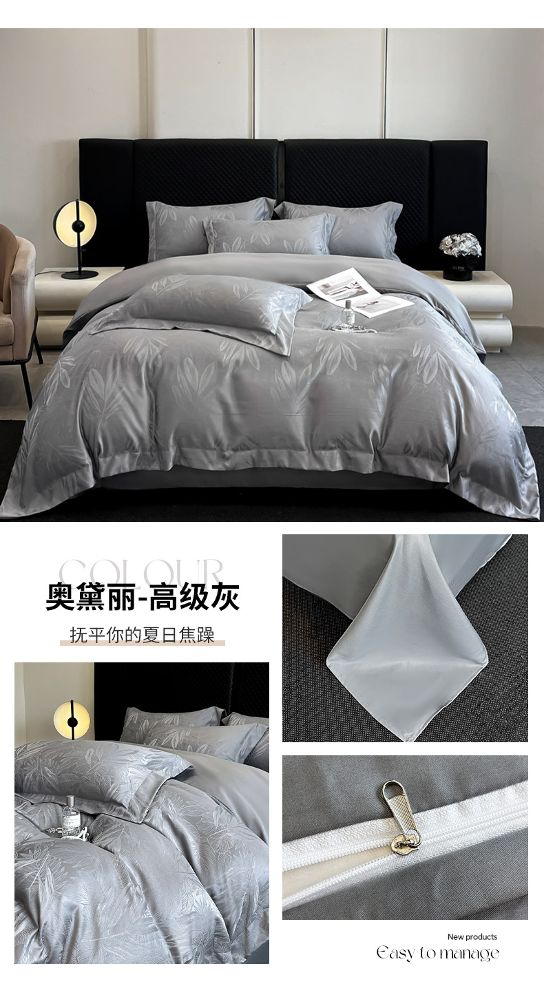 (总)金阳光家纺 2024轻奢款立体浮雕水洗天丝四件套,奶白卡其,奶白灰,嫩粉,浅灰高级灰,香槟灰,高级灰香槟