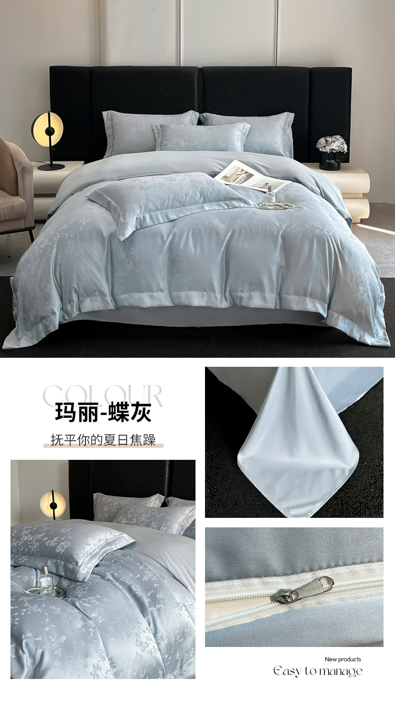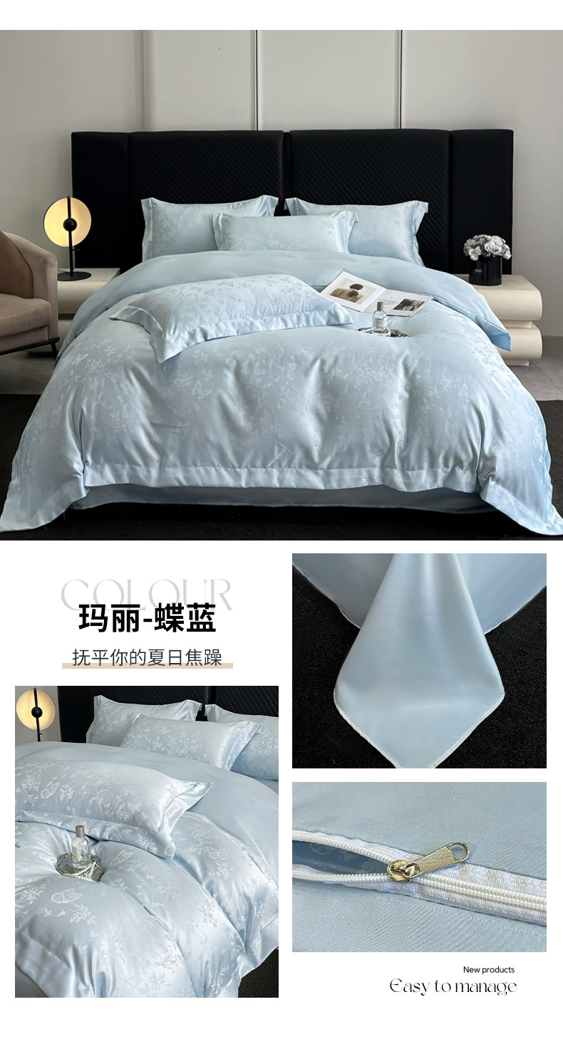 (总)金阳光家纺 2025新款莱赛尔天丝刺绣四件套,浅玉,黛蓝,浅豆沙,浅灰,浅米白粉,浅天蓝
