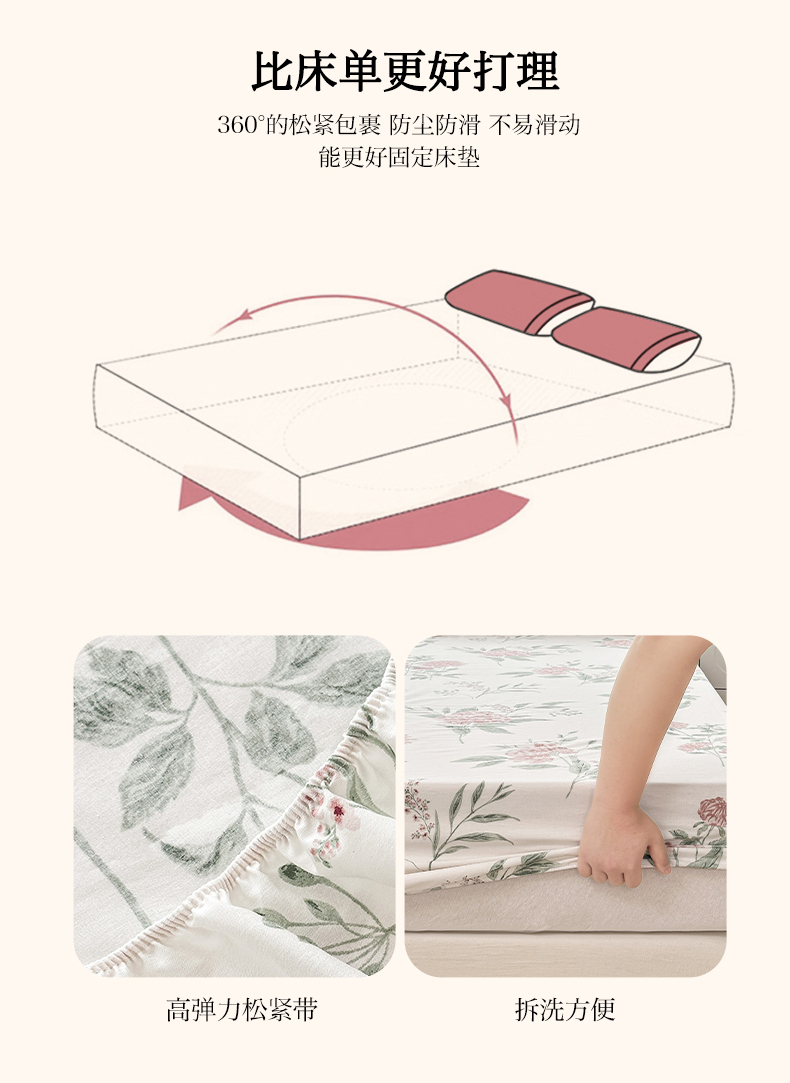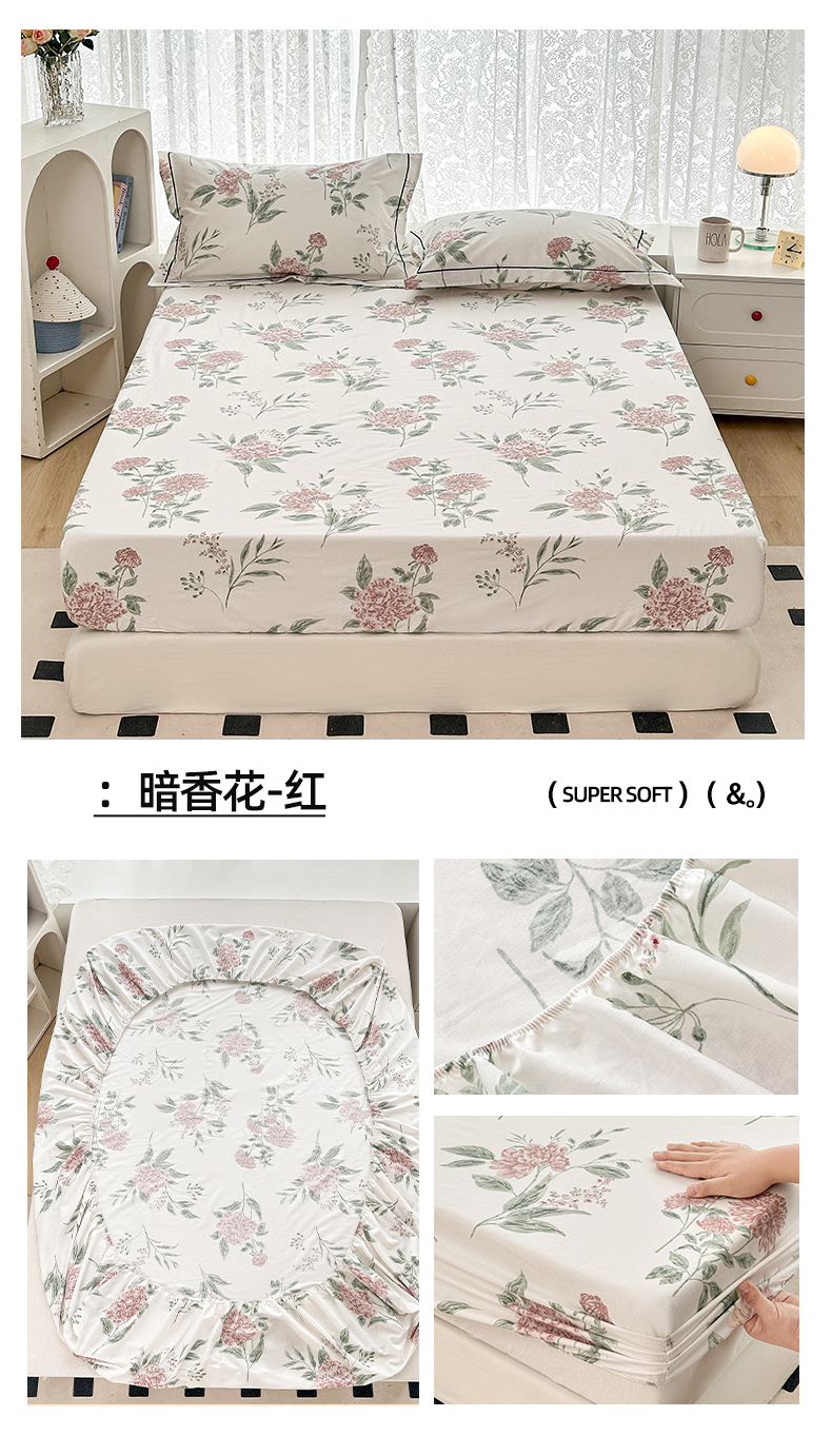 • 91家纺网 家纺一手货源 找家纺 锦罗绣 2025新款全棉13376印花套件单品单床笠 暗香花-红
