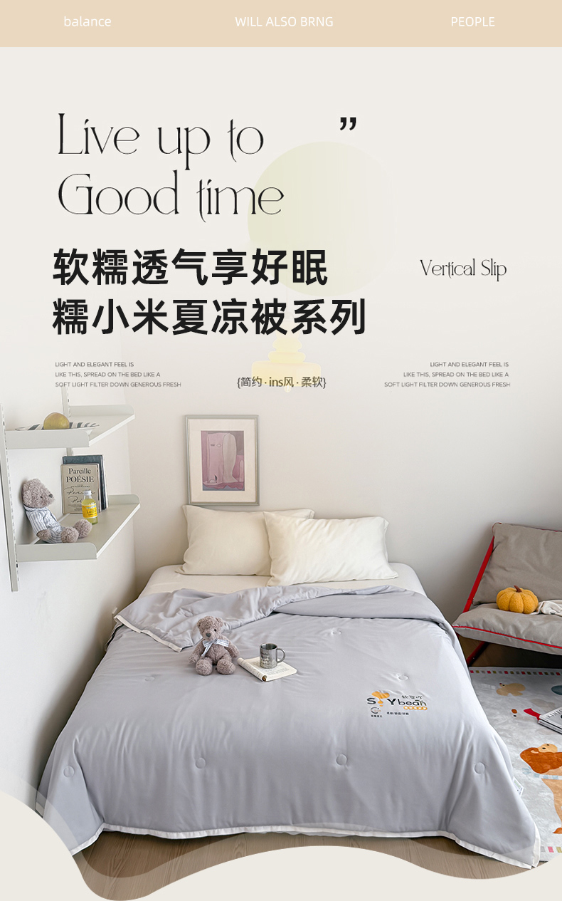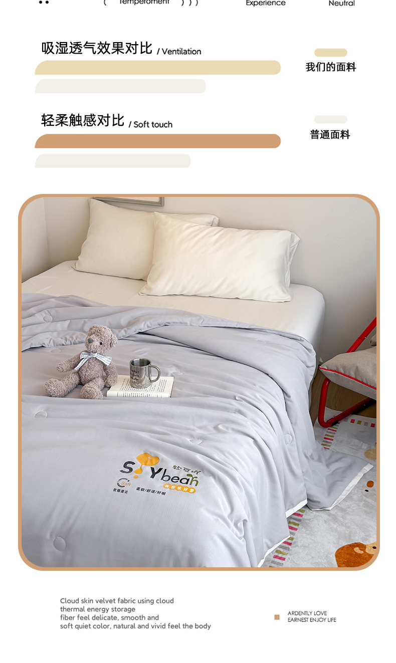 商品名称:亿莱鑫 2025新款超细羽丝棉糯小米夏凉被 空调被 被子夏被夏凉被 高级灰