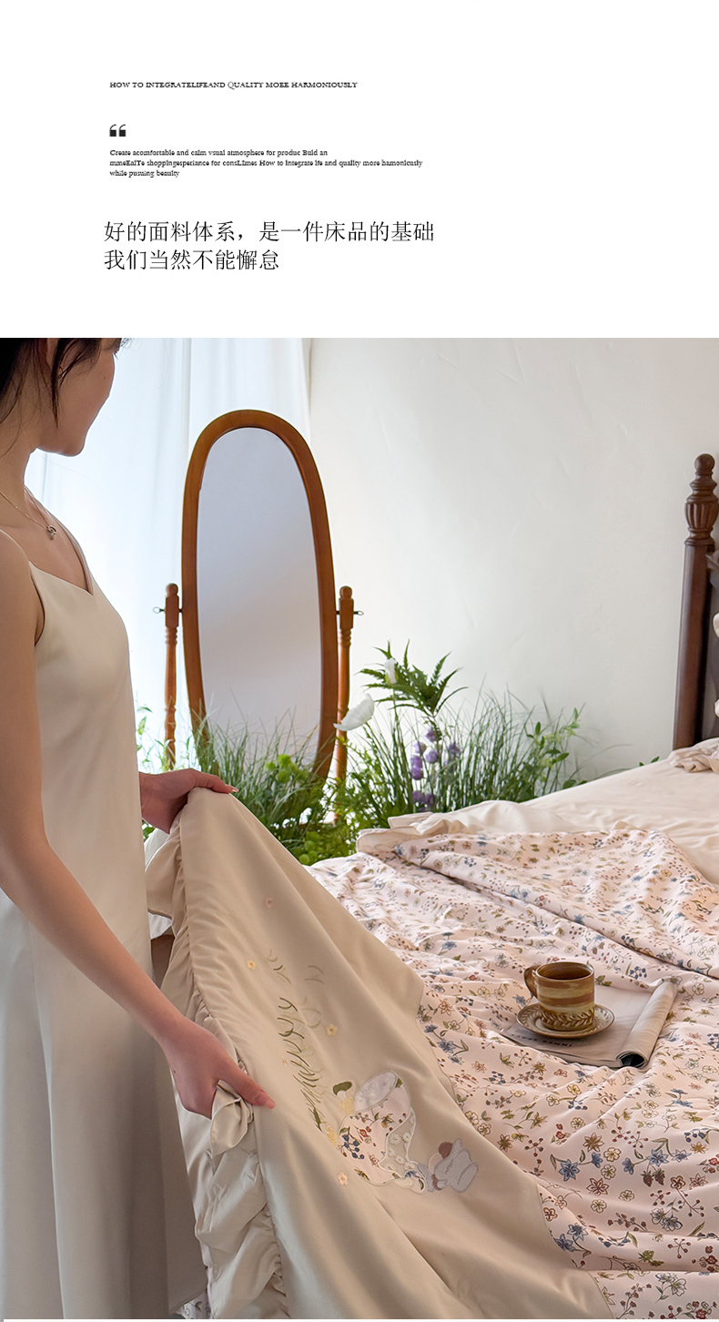 商品名称:亿莱鑫 2025新款7A抗菌超软柔肤棉床裙夏凉被 空调被 被子夏被四件套-复古田园系列 复古田园-气质咖