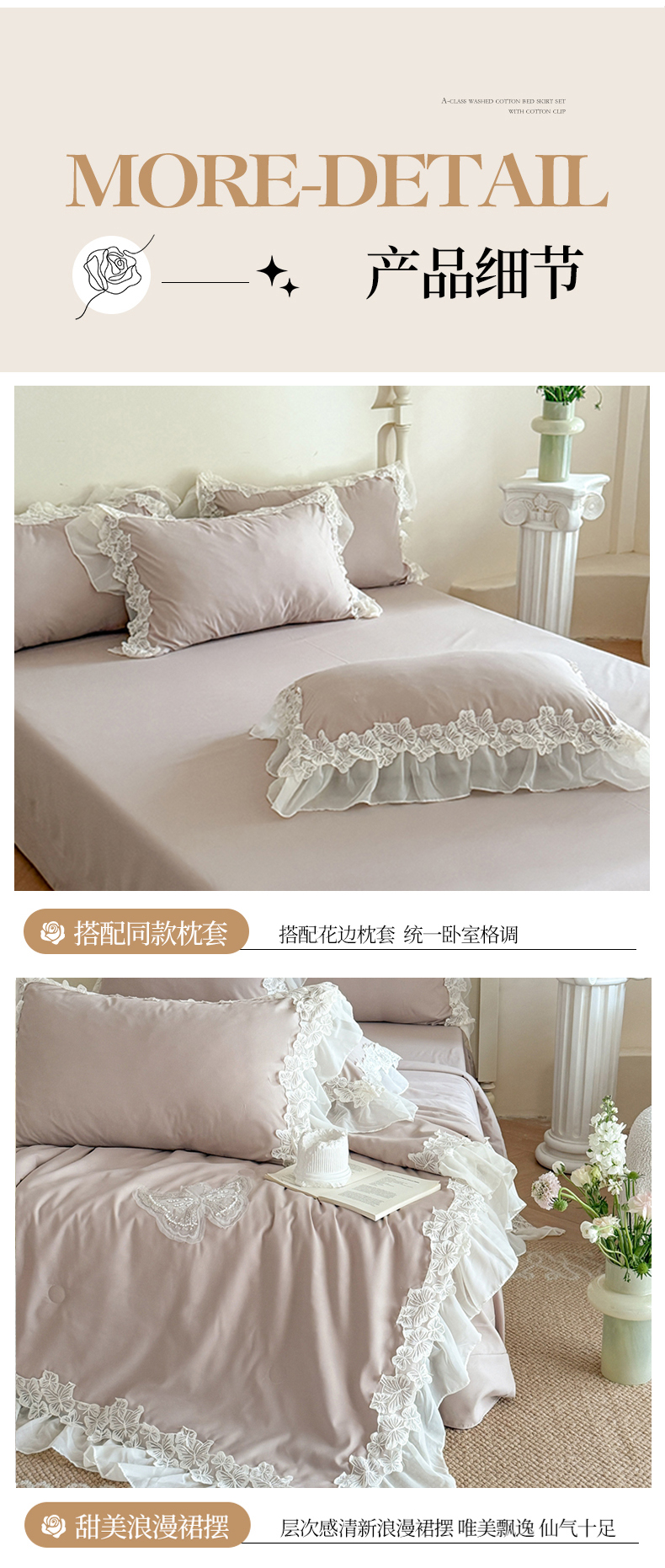 (总)吾欢心 2025秋冬新款加厚雕花绒婴儿绒安娜贝尔系列法式双层花边四件套,安娜贝尔白,安娜贝尔粉,安娜贝尔咖,安娜贝尔蓝,安娜贝尔绿,安娜贝尔紫