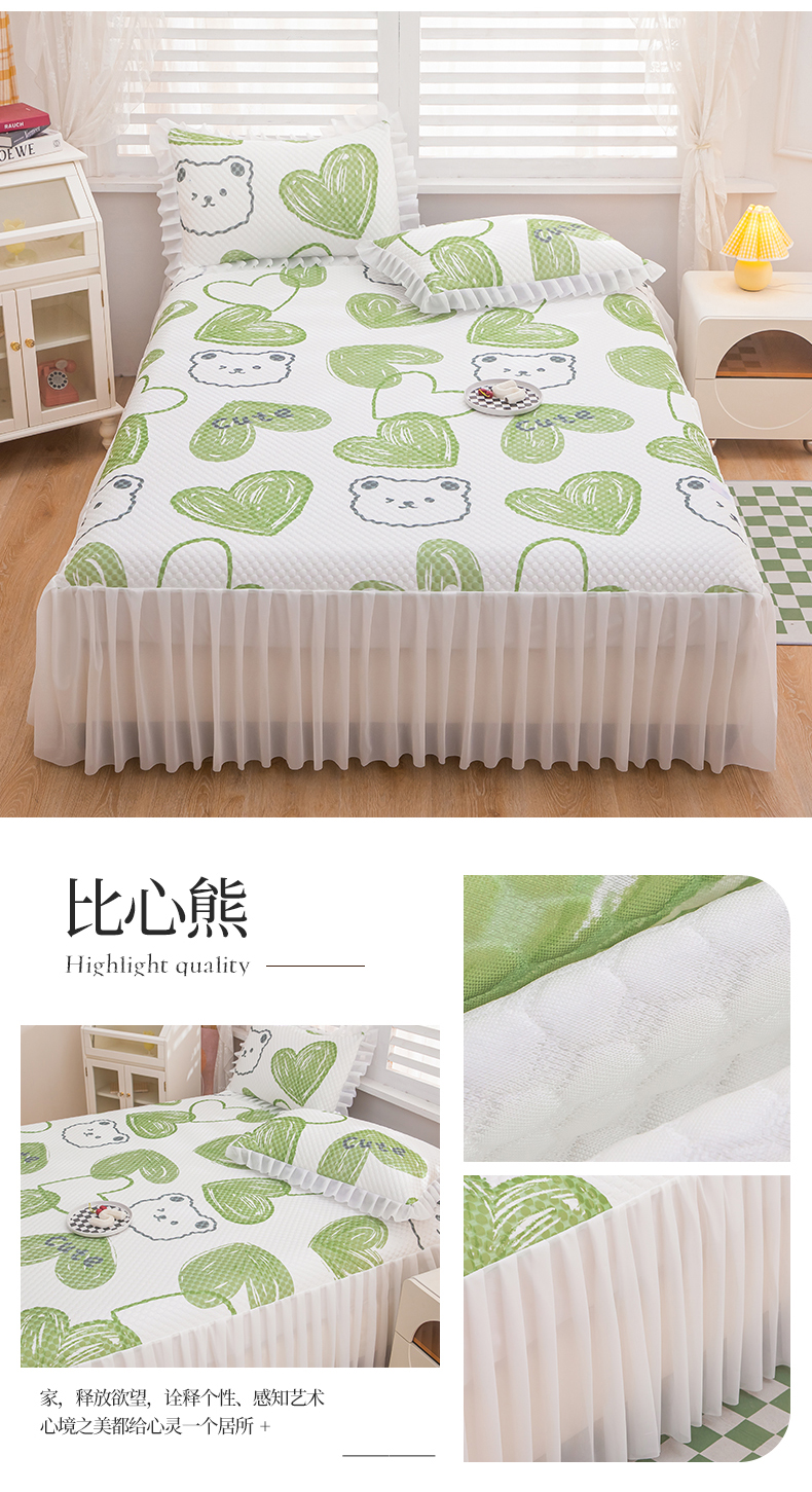 2025新款A类冰豆豆床裙款印花凉席 花漾