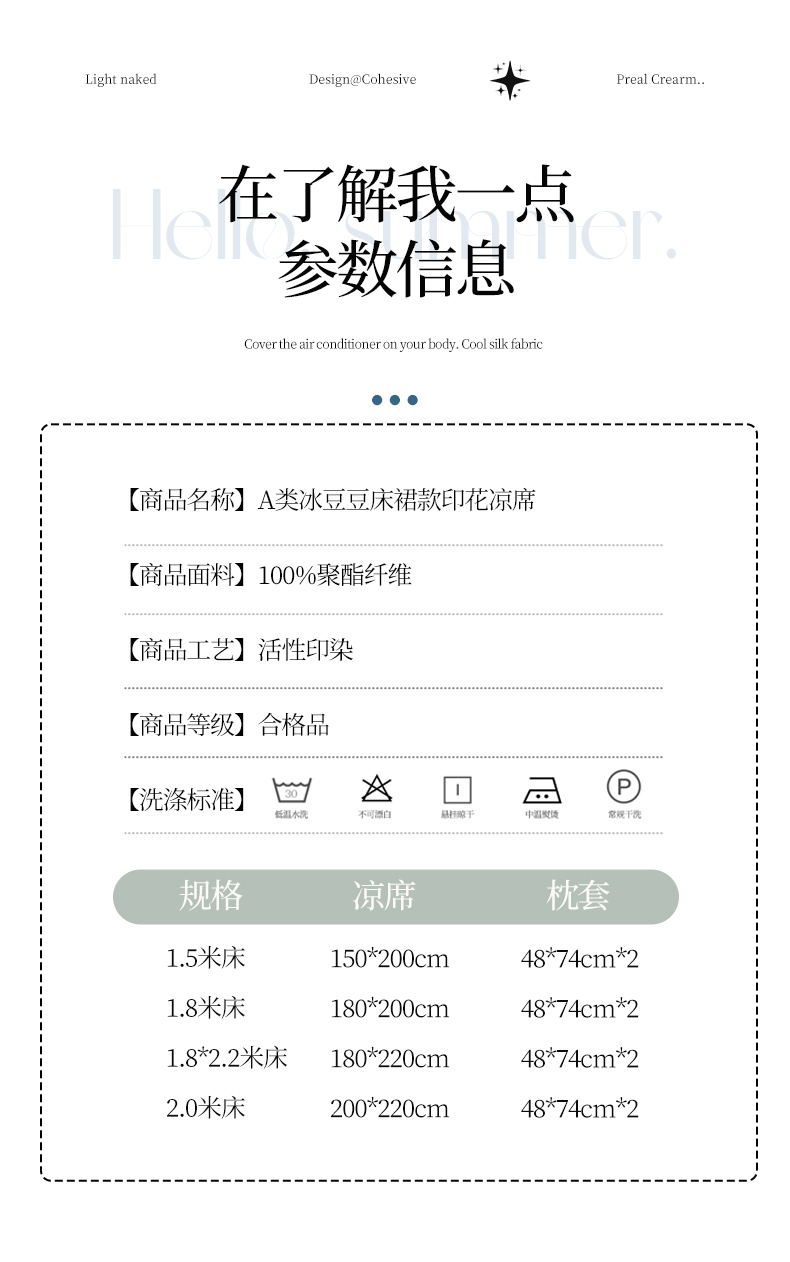商品名称: 2025新款A类冰豆豆床裙款印花凉席 花漾