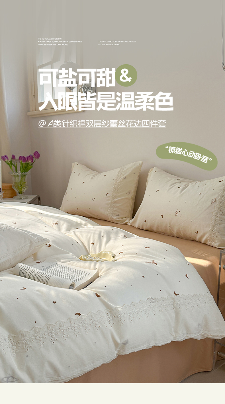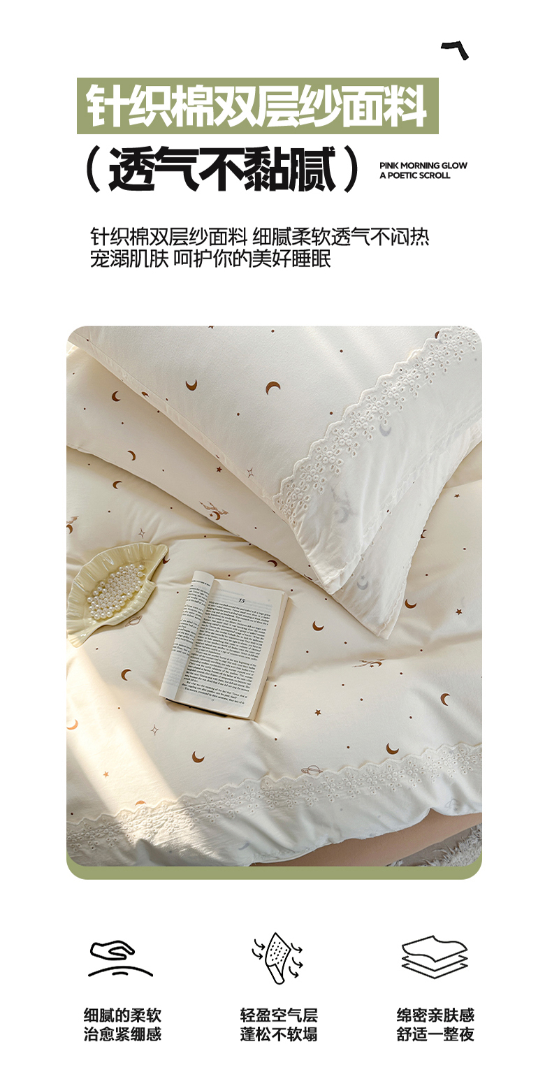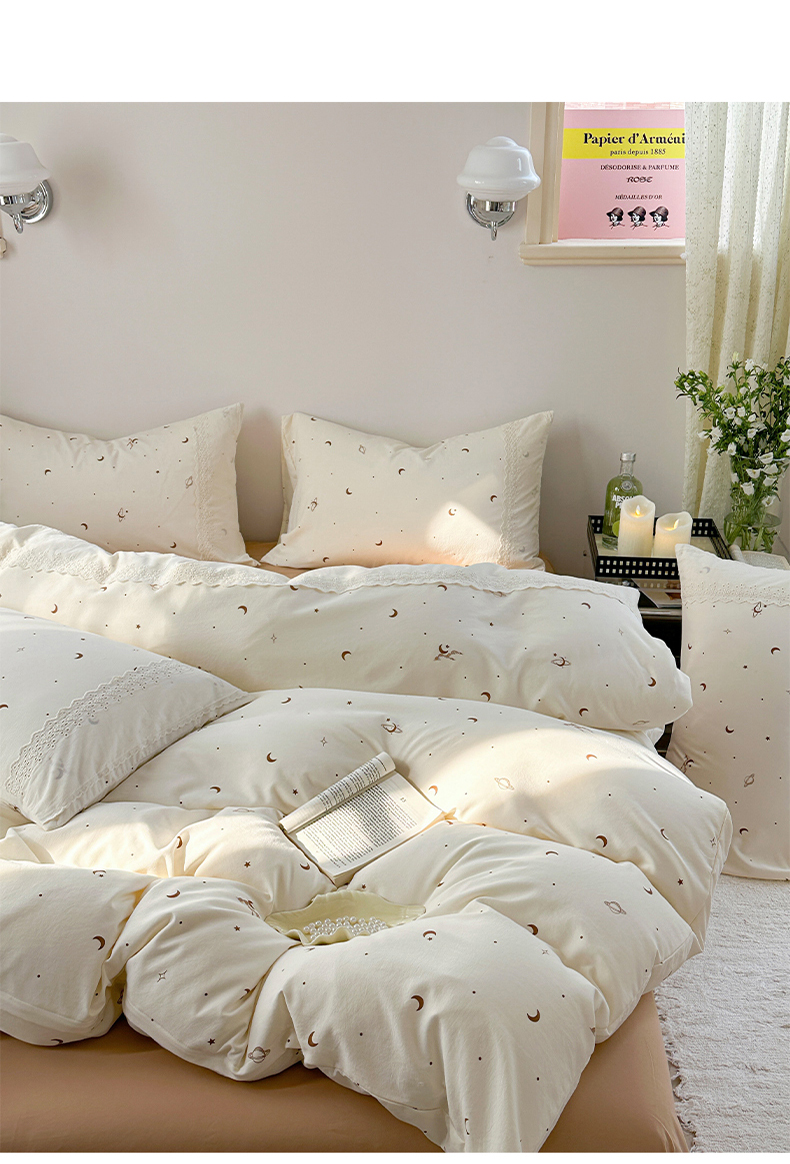 当前位置: 91家纺网 > 商品网购 > 床品套件 > 四件套 > 针织棉四件套 > 2025新款A类针织棉双层纱蕾丝花边四件套 星海漫漫