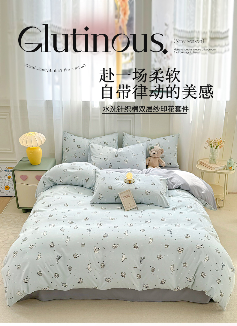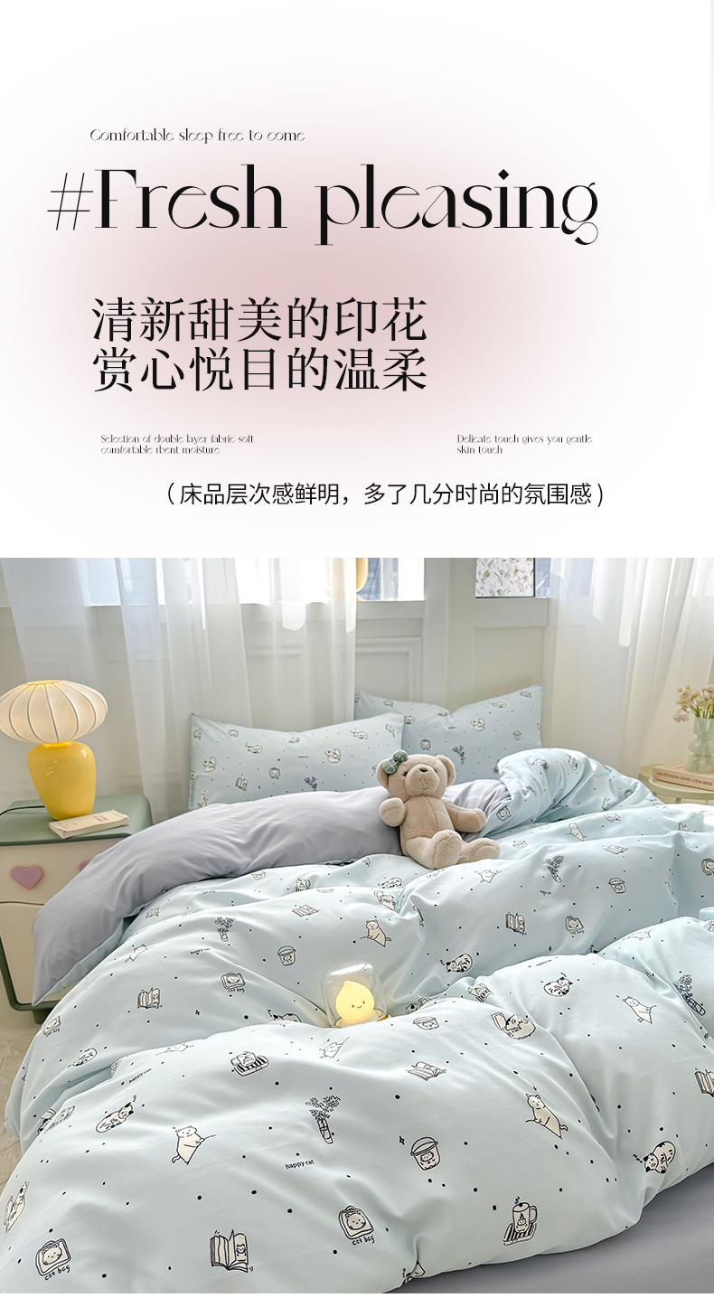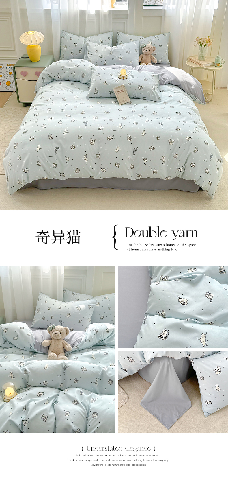 当前位置: 91家纺网 > 商品网购 > 床品套件 > 四件套 > 针织棉四件套 > 丝芙妮家居2025新款水洗针织棉双层纱印花四件套 奇异猫