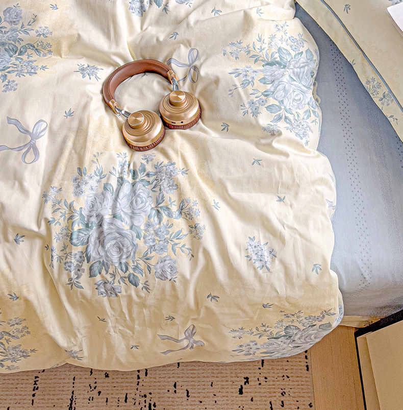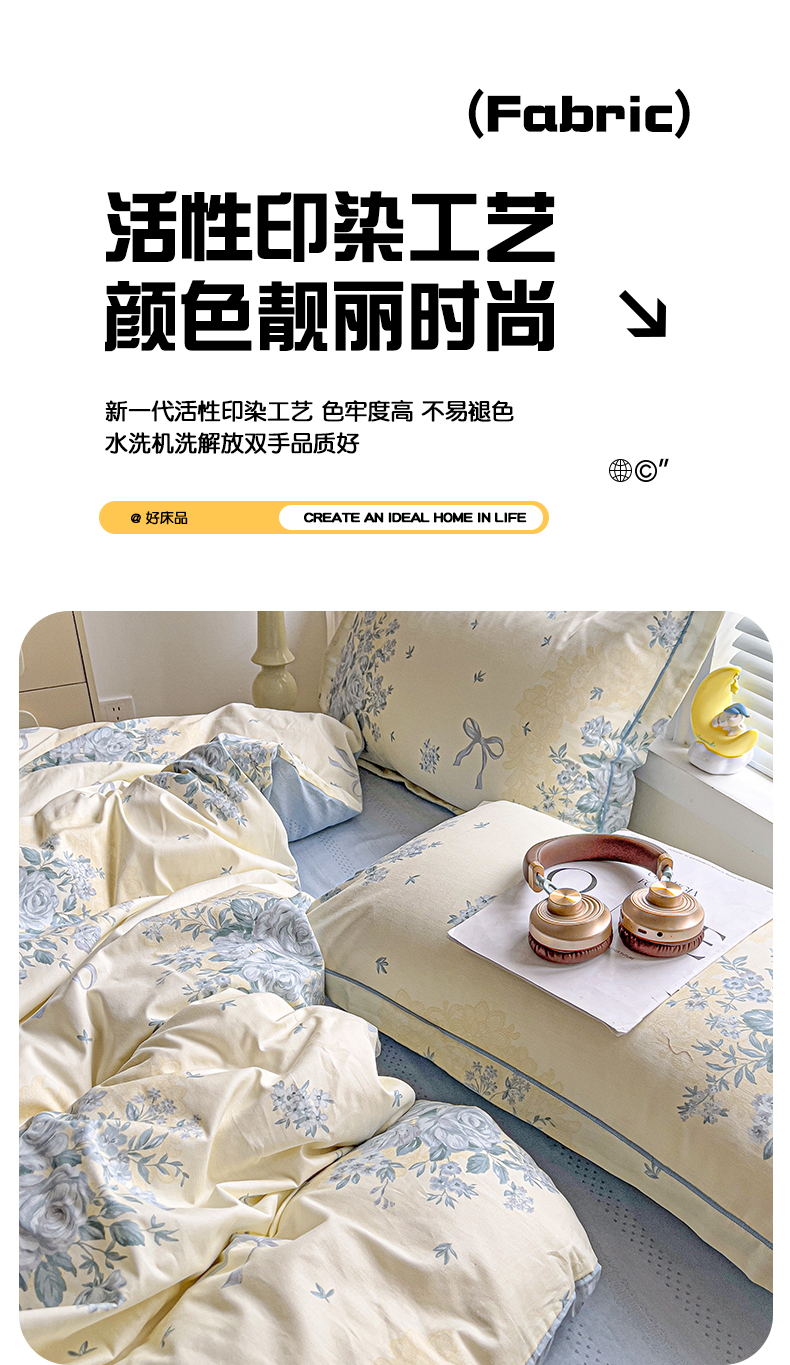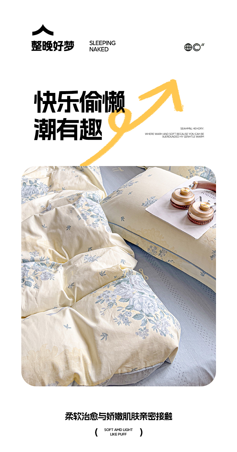 商品名称:优选良品 2025新款全棉纯棉一字绣四件套系列 花影轻颜