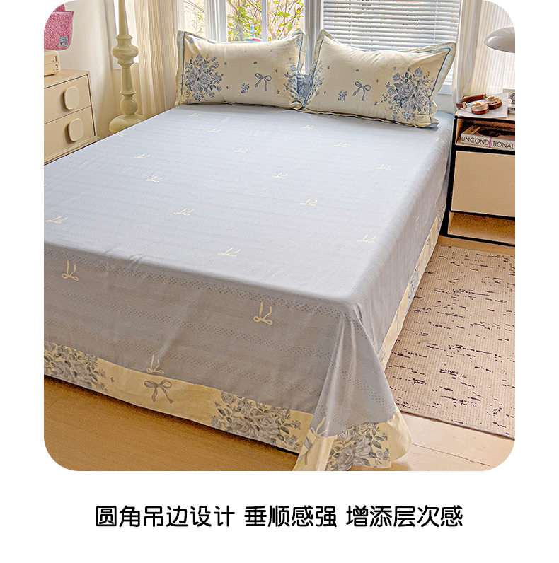 (总)优选良品 2025新款直播热款赫本风皱皱双层纱花边款针织皱皱纱法式印花吊边床单三件套床笠四件套(提供买家秀),艾薇紫,爱心蝴蝶结-蓝,爱心蝴蝶结-米,白茶,波点-蓝,波点-紫,格子爱心,开心乐园,蓝铃,米亚,莫奈,南笙梨梦,拾春,舒曼,晚香玉,寻薇,雅秀,瑶枝,紫萱