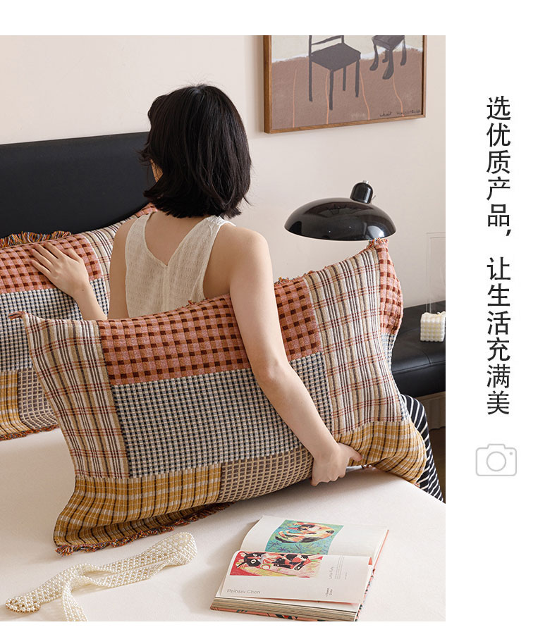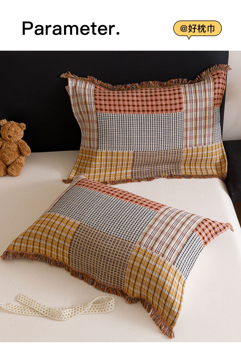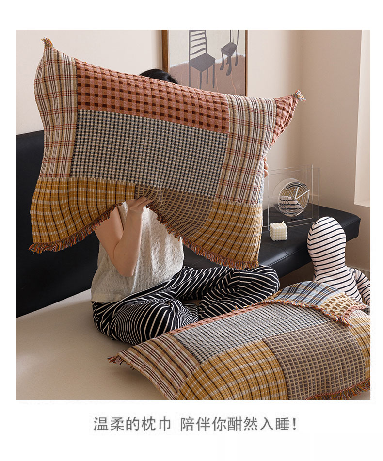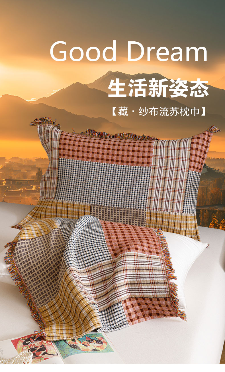 商品名称:麻依2025新款色织提花流苏枕巾 格律