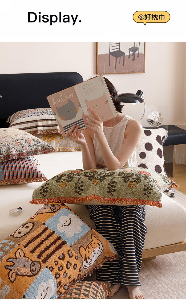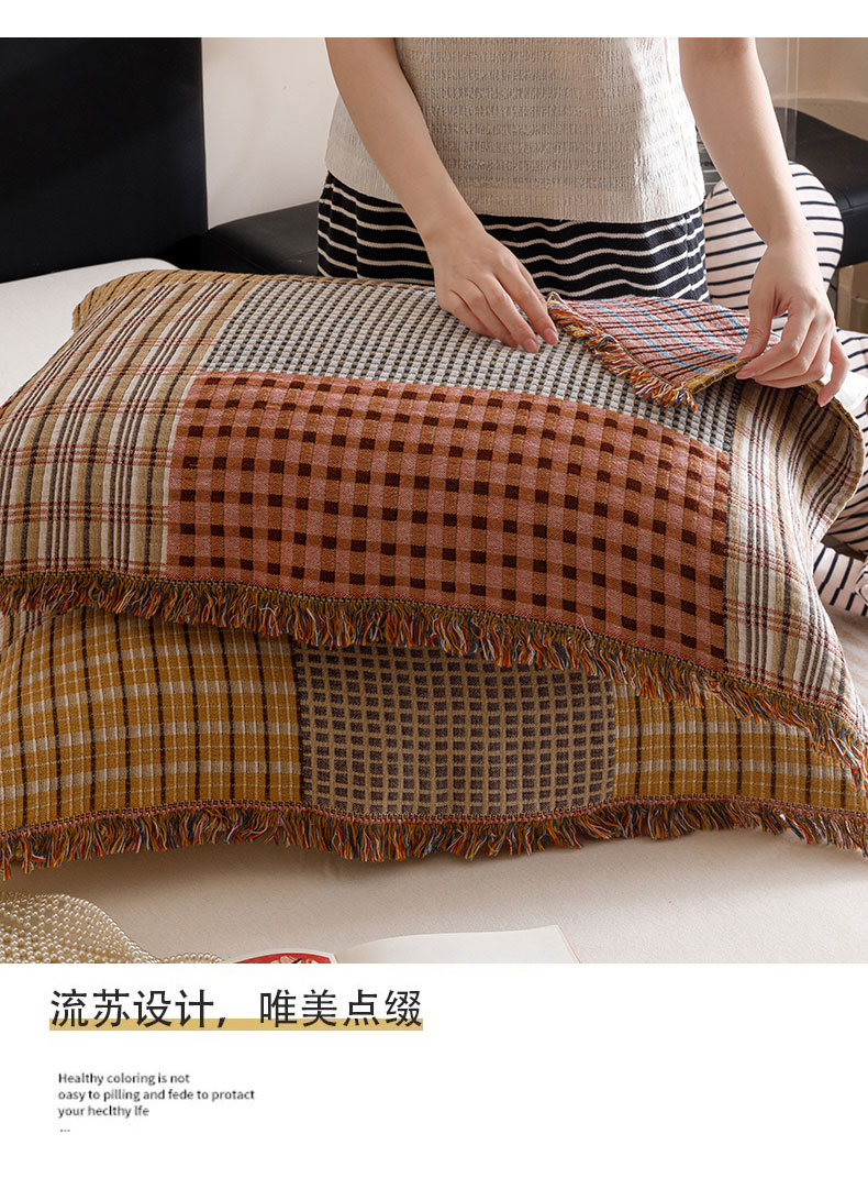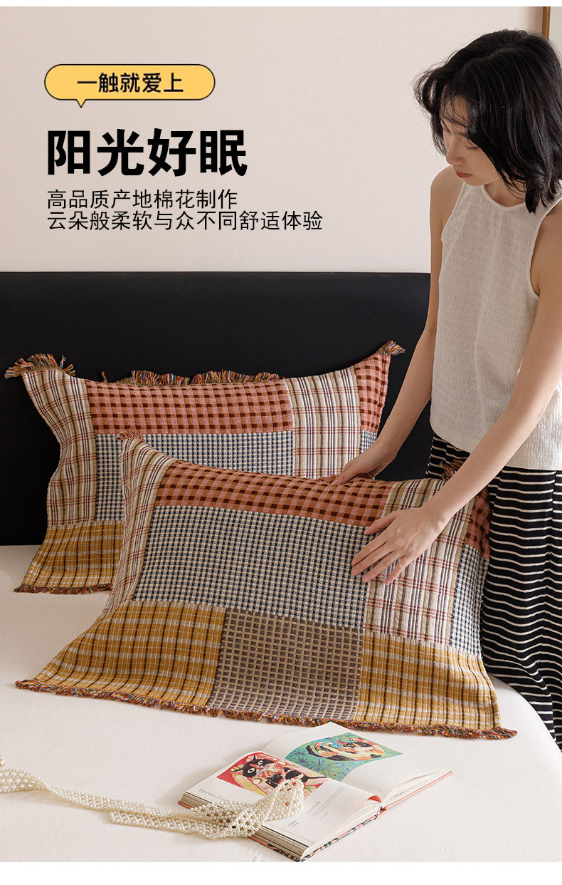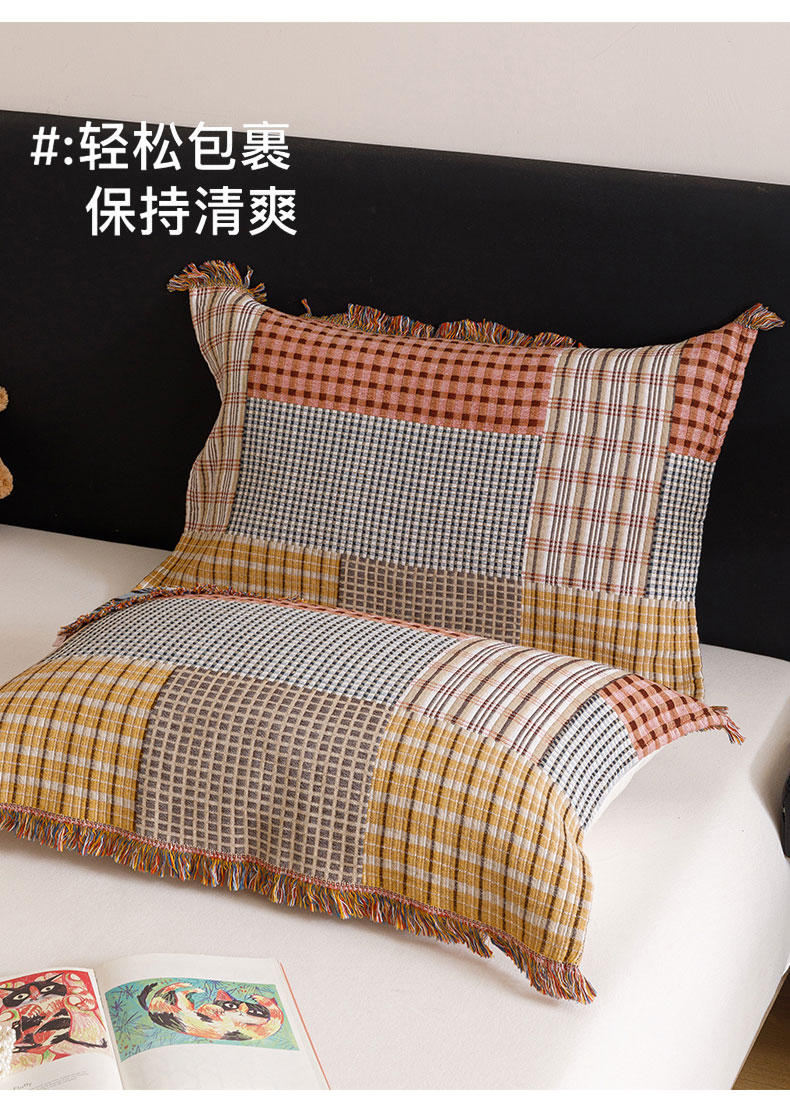 商品名称:麻依2025新款色织提花流苏枕巾 格律